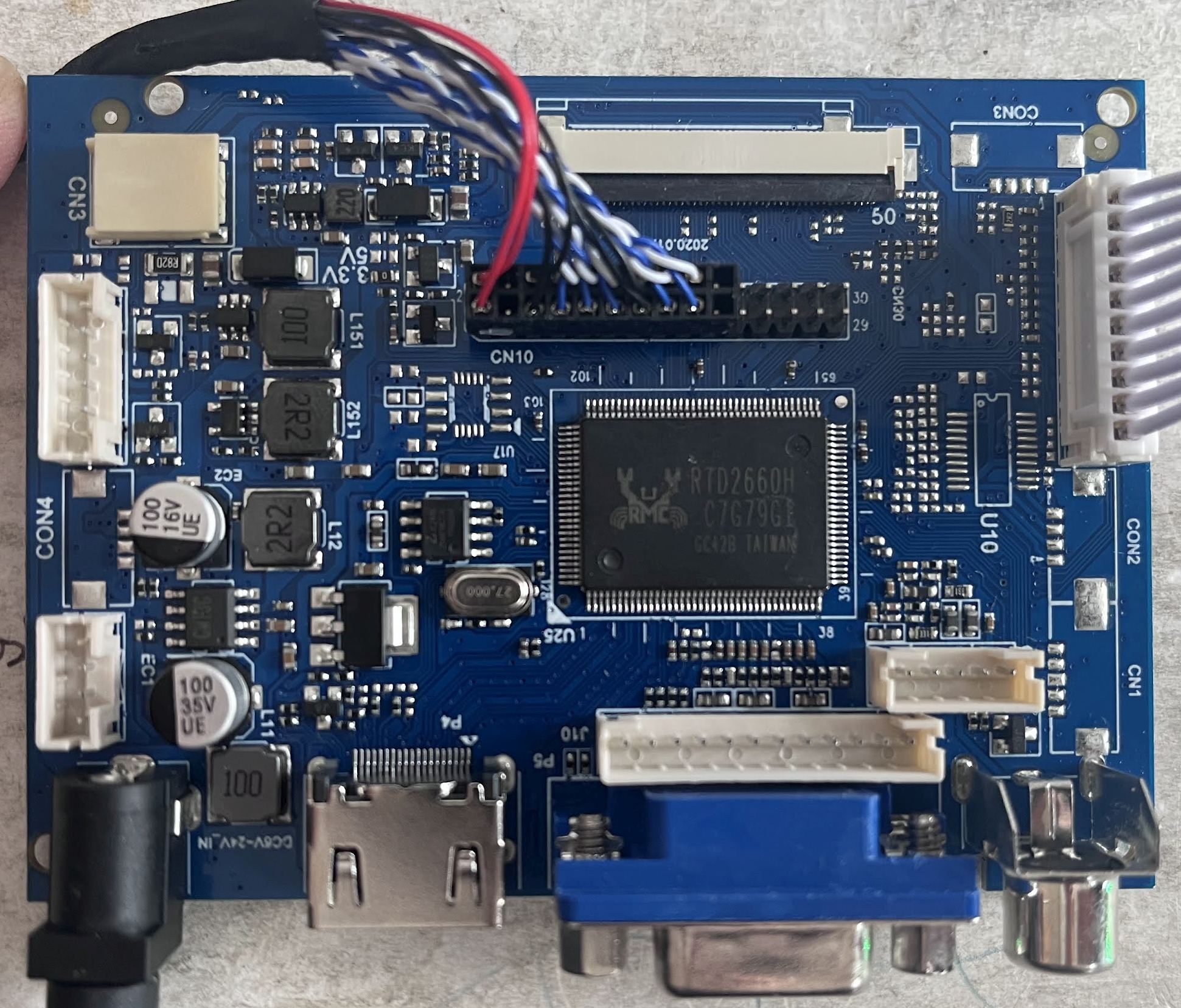 Hallo zusammen, ich habe ein Lieberr-Display mit einem TM070RVHG71 TFT mit Auflösung 800x480. Dazu habe ich mir ein Converterboard P08-2AV-1VGA-1HDMI-TTL-LVDS-AUDIO-AOC-V1.2 bestellt. Das Board wird auch als 800x480 per HDMI in Windows erkannt. (so habe ich es gekauft - ja, auf dem Aufkleber steht drauf 1024x600) Leider sehe ich auf dem Display absolut nichts. Nur beim Einschalten des Boards wird am Display unten ein paar Pixel hell. Auch wenn ich das Menü den Converterboards per Taster einschalte, kommt nix. Wenn ich den Stecker auf das Converterboard schräg aufstecke (sodass die 3,3V keine Verbindung haben), flackert das Display... Spannung original sind auch 3,3V; habe ich an der originalen Steuerplatine gemessen. Hat jemand eventuell sowas schon mal probiert?
