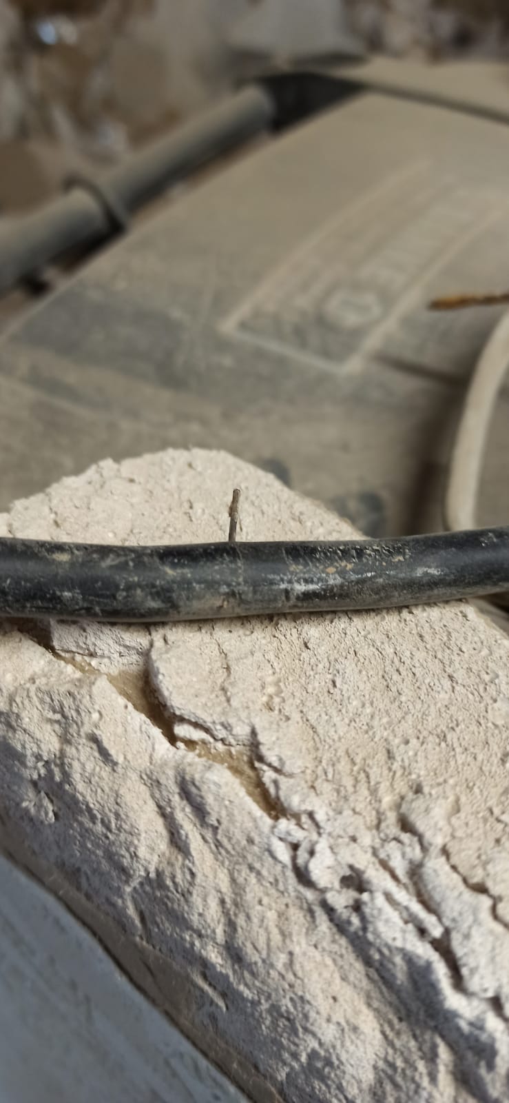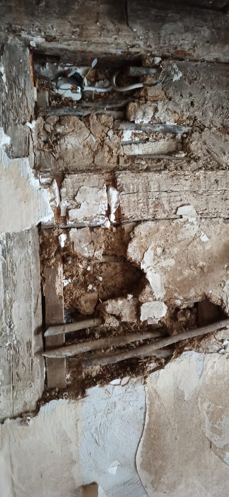 Beim Entkernen freigelegt So wurden früher Kabel Befestigt und dann alles Unterputz gelegt. I-Rohr und Blechunterputzdosen. Man sieht das Original nicht mehr so oft nehme ich an. Achtet auf die Nägel! MfG ein 81 Jähriger