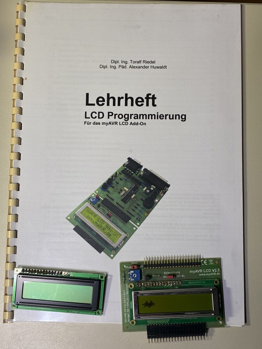 Verkaufe my AVR Lehrbuch incl. Platine, LCD und Lehrhefte. Die LCD Anzeige ist leicht defekt, ich lege noch ein Schlacht LCD dazu. Alles zusammen 44 Euro inclusive Versand.