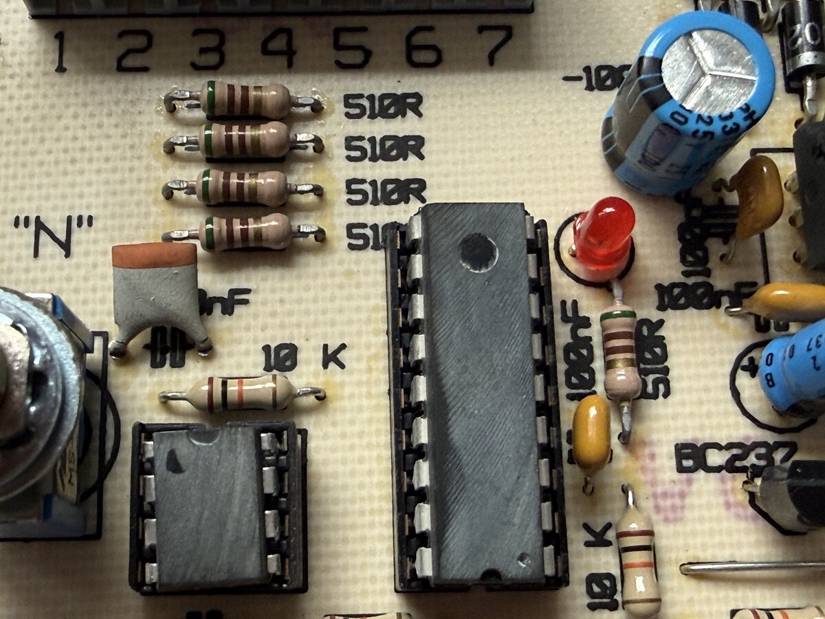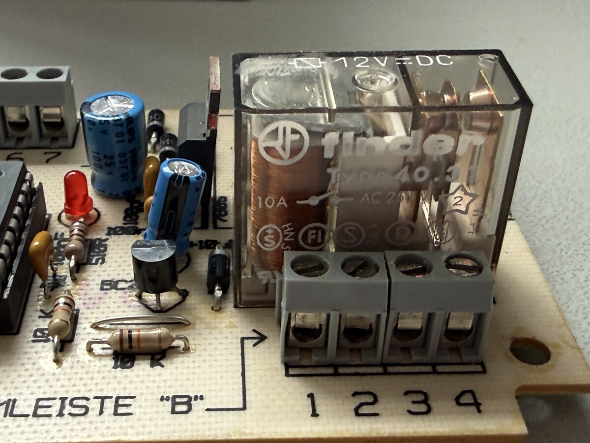 Hallo liebes Forum, ich habe folgendes Problem: ich habe auf einer Platine die durch ein Code-Zahlenschloß angesteuert wird leider keine Funktion mehr. Der Strom 12 V vom Garagetormotor kommt an. Das Relais schaltet nicht mehr und die rote LED geht nicht an. Ich wollte schauen welche IC‘s da verbaut sind, da hat man sehr wahrscheinlich die Nummern rausgeschliffen damit man die nicht mehr identifizieren kann. Hat jemand eine Lösung was da kaputt sein könnte ? Liebe Grüße Peterklaus