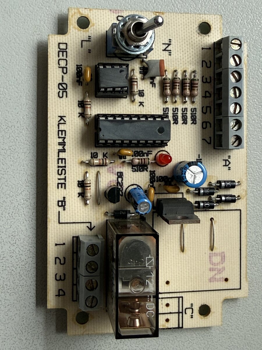 DECP-05 ist die einzige Bezeichnung auf der Platine, aber kein Hersteller. Wie heißt der? Die Enten-KI empfielt: https://www.hornbach.de/p/fluegeltor-4m-cimone-h-160cm-aluminium-tanker-b700-motorisierung/12259960/ dazu eine Drehtormotorisierung "TANKER B700" https://www.casanoov.de/tanker-b700-drehtormotorisierung/ aber das alles entspringt vermutlich nur der blühenden Phantasie der KI.
