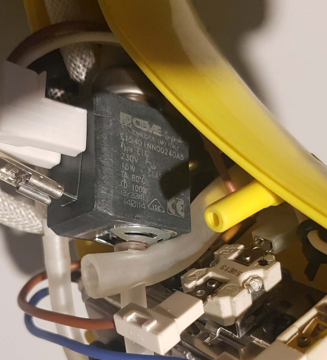 Eingebaut ist die bei Kärcher nicht mehr erhältliche Schwingankerpumpe 6.473-506.0, eine CEME 15401 mit 230VAC 15W Spule, 2,5bar und 61cc/min: https://cleanshop.ru/catalog/cpsc/6473506.html Wenn sie brummt, ist die Spule in Ordnung. Bestimmt klebt nur ein Ventilgummi im Sitz. Wenn sie verpresst ist, kann man sie nicht zerlegen. Möglicherweise helfen >>5bar Wasser in Flussrichtung zu beaufschlagen. Nach Erfolg schadet eine Ladung Entkalker nicht. Hier in Ungarn angeblich für 8590ft (23€) erhältlich: https://www.eurobeat.hu/szivattyuk-kavefozokhoz-presszogepekhez/27080-karcher-6473-5060-kavefozo-szivattyu.html https://www.cemegroup.com/de/vibrationspumpen/e154-10 https://files.cemegroup.com/elettropompe/0/10/Technical%20specification%20E150.635899394617327450.pdf Diese E151 für 25€ müsste gemäß Datenblatt auch gehen: https://de.aliexpress.com/i/10000234965965.html H. H. schrieb: > Ansonsten Temperaturregler und Sicherheitstemperaturbegrenzer prüfen. Geht einfach mittels Energiekostenmeter.