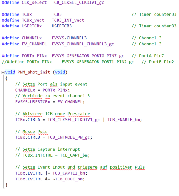 Hallo Leute Ich habe ein ATMega4809 und versuche einen PWM zu messen. Das funktioniert auch alles, wenn ich EVSYS.CHANNEL0 verwende. Aber mit dem Channel 3 wie oben im code geht es auf einmal nicht mehr. Woran könnte das liegen? Vielen Dank im Voraus