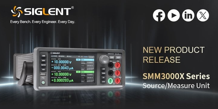 SIGLENT Technologies releases SMM3000X Series Source/Measure Unit (SMU). SMM3000X features 6½-digit resolution, output capability of up to ±210 V DC voltage, ±3.03 A DC current, and ±10.5 A pulsed current, with programming and measurement resolution down to 10 fA / 100 nV, and a maximum acquisition rate of 100,000 points/s. |