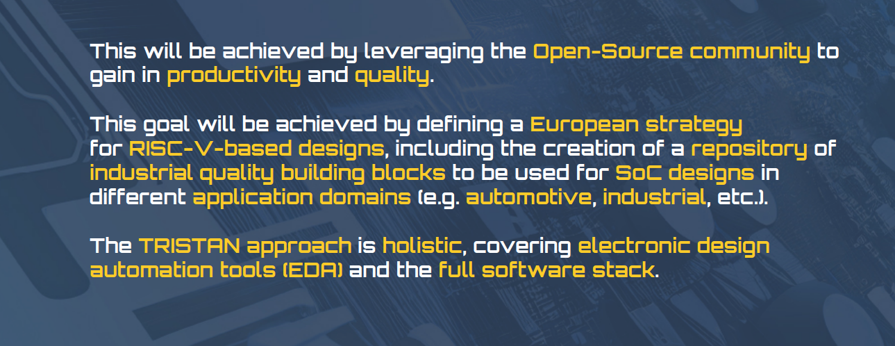 Die quelloffene ISA RISC/V scheint nun auch die Aufmerksamkeit der EU erregt zu haben. In Zusammenarbeit mit der zu Eclipse gehörenden Open HW Foundation lanciert man ein als Tristan bezeichnetes Projekt, dass das Anbieten von schlüsselfertigen IP-Blöcken auf RISC/V-Basis zum Ziel hat.