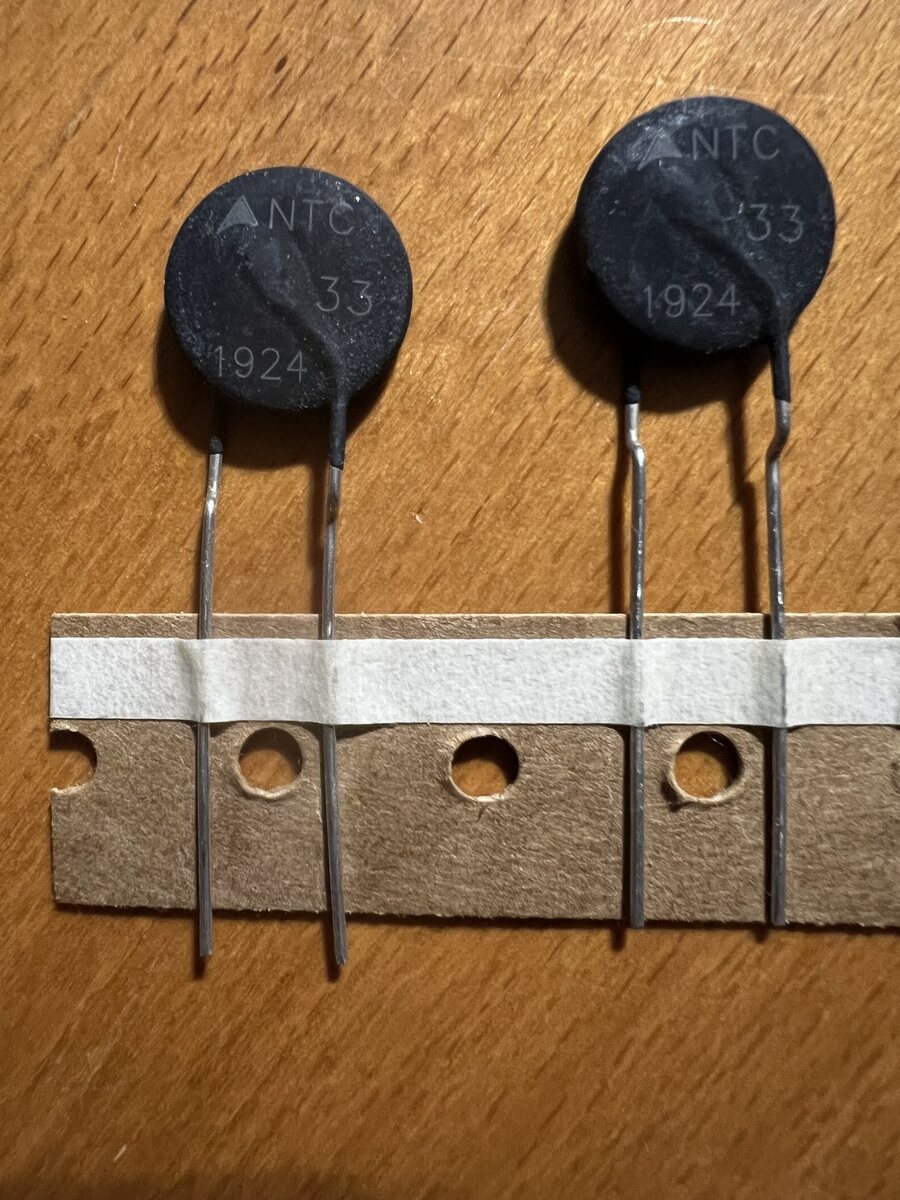 Genau, habe auch 22 Ohm eingebaut. Die gleichen wie im Bild, nur halt 22 statt 33. Der NTC ist jetzt deutlich voluminöser als der Originale. Ob das Vor- oder Nachteil ist wird sich zeigen. Jedenfalls hat der einige hundert Einschaltvorgänge unbeschadet überlebt, hab die Kiste vorhin nochmal aufgeschraubt und nachgesehen, um sicher zu gehen. Werde das Gerät so zurückgeben. Auch wenn ich nicht 100% sicher bin, dass der Fehler beseitigt ist. Übrigens, auf Reddit und youTube findet man auch Posts mit verschlissenen NTC, aber ohne Hinweis auf geworfene Sicherungen.