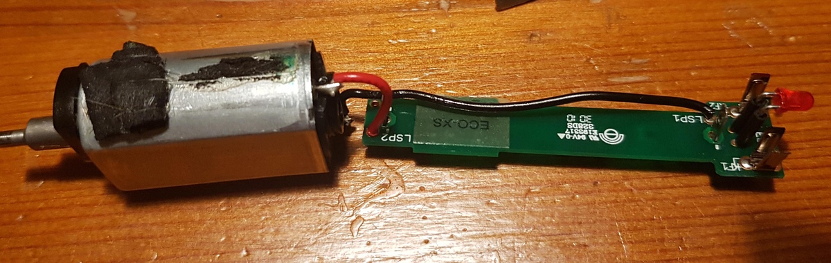 Hallo, bei dem Kurzhaarrasierer von Tondeo funktioniert das Aufladen nicht mehr.Es handelt sich um das Modell Tondeo Eco-SX mit einer sehr überschaubaren Elektronik. Während des Ladens leuchtet eine rote LED am Ladegerät, nach dem Aufladen wechselt diese auf Grün. Während des Betriebes leuchtet auf der Unterseite des Gerätes eine LED (rot)Die rote Lade-LED wechselt nicht auf grün, die Betriebs-LED leuchtet überhaupt nicht. Zuerst dachte ich natürlich, dass es am alten Akku liegen würde. Also neuer rein. Pustekuchen. Also irgendetwas mit der Ladeelektronik defekt Auf der Platine befinden sich drei intakte Widerstände und eine intakte Diode. Das Ladegerät bringt 5,1 Volt Wechselspannung, wie es sein soll. Die Betriebs-LED (kenne die Daten nicht) zeigt Durchgang. Kann DAS schon der Fehler sein ? PS Der Motor läuft beim Einschalten !