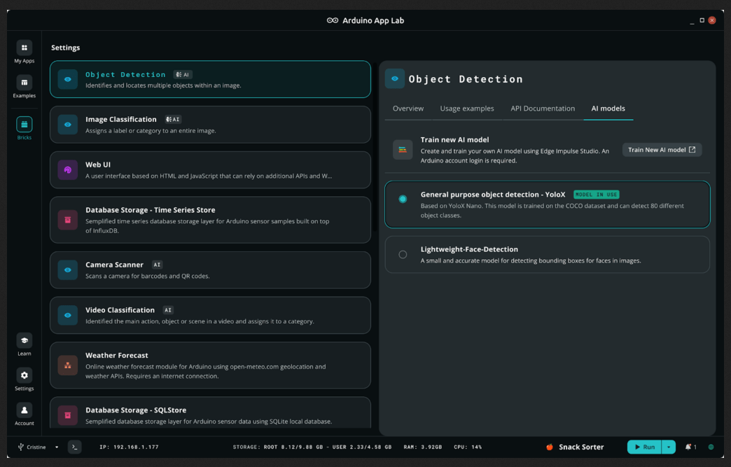 Dass der Arduino Q von Anfang an auch zur Ausführung von AI-Payloads vorgesehen war, ist anhand der Ankündigung klar erkennbar. Interessant ist indes, dass man im Hause Qualcomm mit Edge Impulse eine in der Cloud lebende Modellentwicklungsumgebung anbietet. Bisher galt, dass dieser nicht in das Arduino App Lab integriert war - ein Zustand, den die Italiener nun wie in der Abbildung gezeigt auflösen.