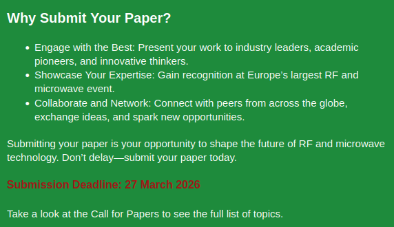 European Microwave Week: Einreichungsdeadline endet bald.