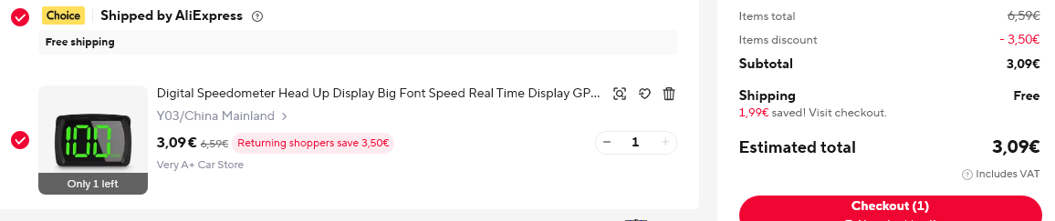 Ein etwas anderer GPS Tacho in derselben Preiskategorie (um die EUR 10), siehe Bilder. Die andere Seite der Platine enthält nur die LEDs. Der LED Treiber ist ein TM1652 von Titan Micro Electronics, der Mikrocontroller ist der 8-Pin IC (Aufschrift F1A 2401), das GPS Modul laut den Angaben aus der UART Kommunikation (9600 Baud, alle 0.2 Sekunden kommt ein Update der Position) ein GK9501 (E108-GN01 Modul) von Ebyte. Schalter und LDR sind jeweils über einen ADC Eingang angebunden, der Buzzer belegt ebenfalls einen Pin, und dann noch jeweils ein Pin für das GPS Modul und den LED Treiber. Der Hersteller des Moduls ist vermutlich Shenzhen WINS-NOVELTY, einen Produktüberblick gibt es hier: https://exhibitorsearch.messefrankfurt.com/images/original/document_downloads/10000007202401/372106/1717731417091_1667815840.pdf Und die Anleitung zum Gerät ist die hier: https://m.media-amazon.com/images/I/713DniqTPPL.pdf