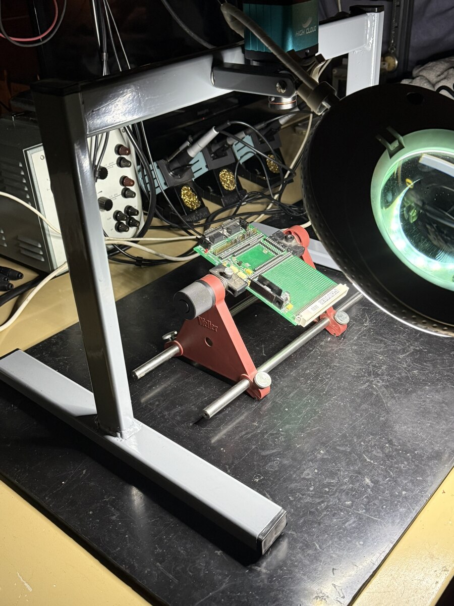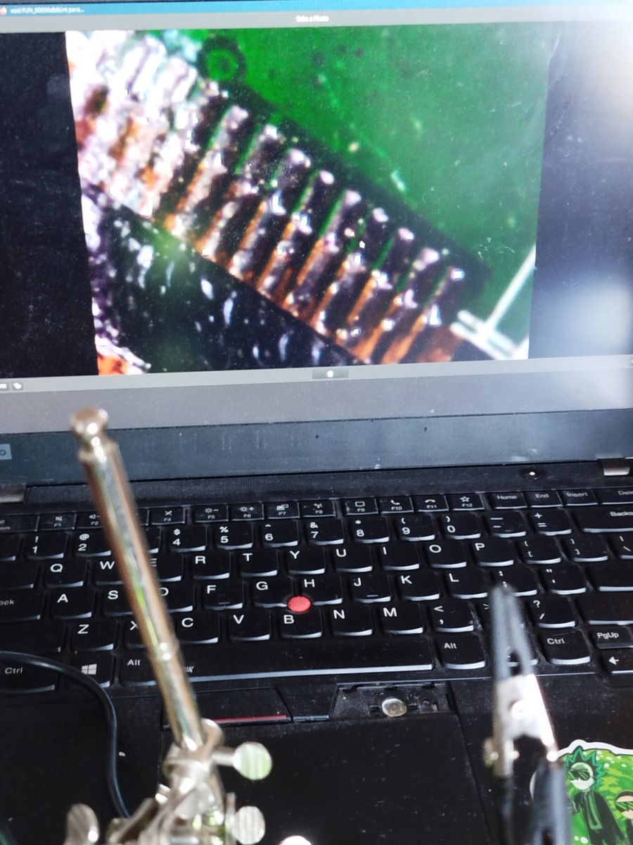 Dr. T. schrieb: > Habe mir mal vor einiger Zeit sowas geschweißt. Stabil, wackelfrei und > mit Mikroskop-Cam. Ich finde bemerkenswert, dass deine Kamera mit so großer Distanz zur Platine funktioniert. Anstatt Platinen mit Klammern zu halten, drücke ich sie gerne auf Knete als Unterlage.