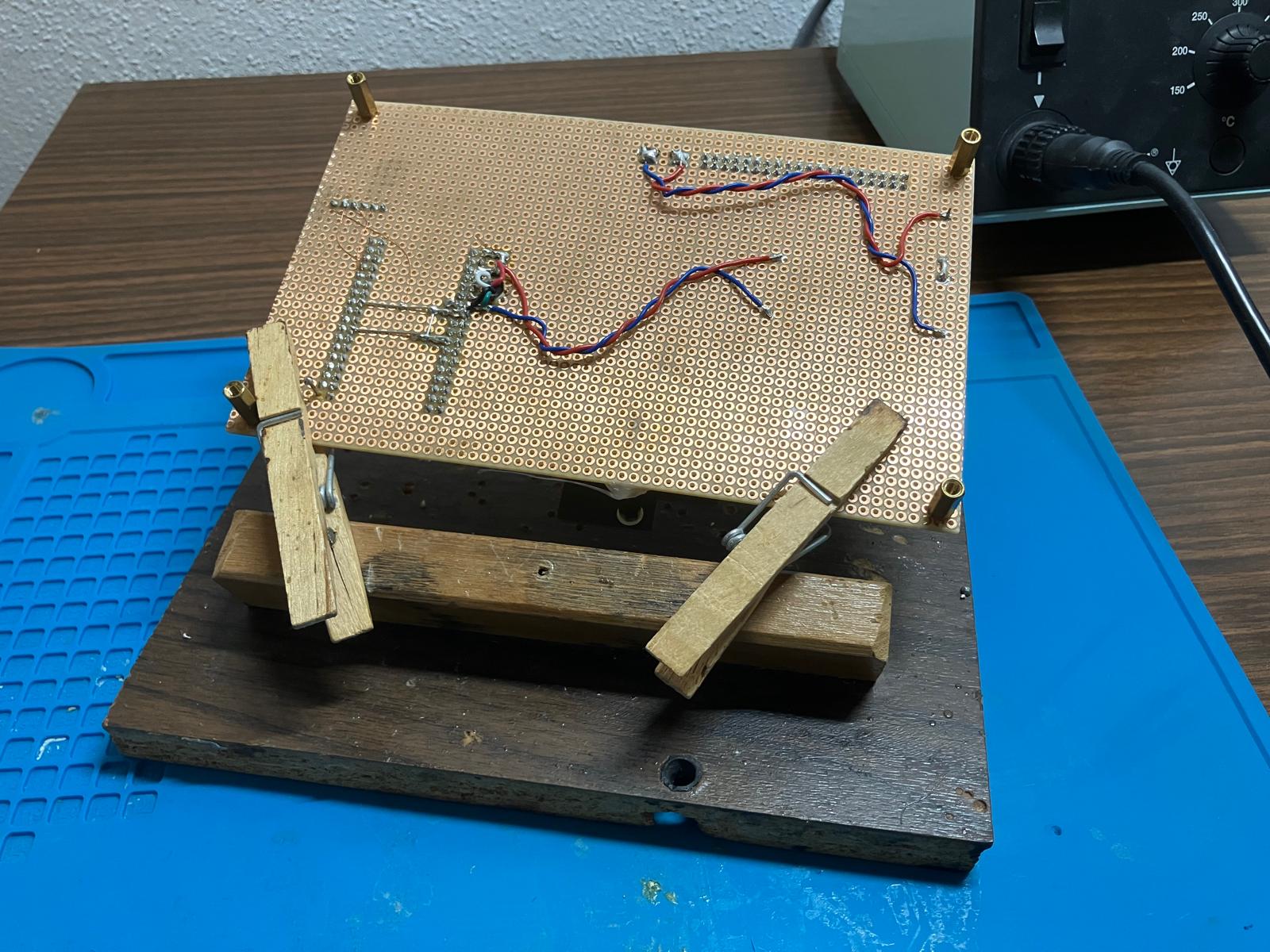 Bei allen Löthilfen welche die Platine fixieren ist es auch sehr wichtig, dass man sich dazu auch eine einstellbare Handballenauflage bastelt welche das zittern minimiert und somit auch kleinste Sachen gut zu löten macht. Gerade wenn es eng ist, ist eine ruhige Lötspitze wichtig. mfG