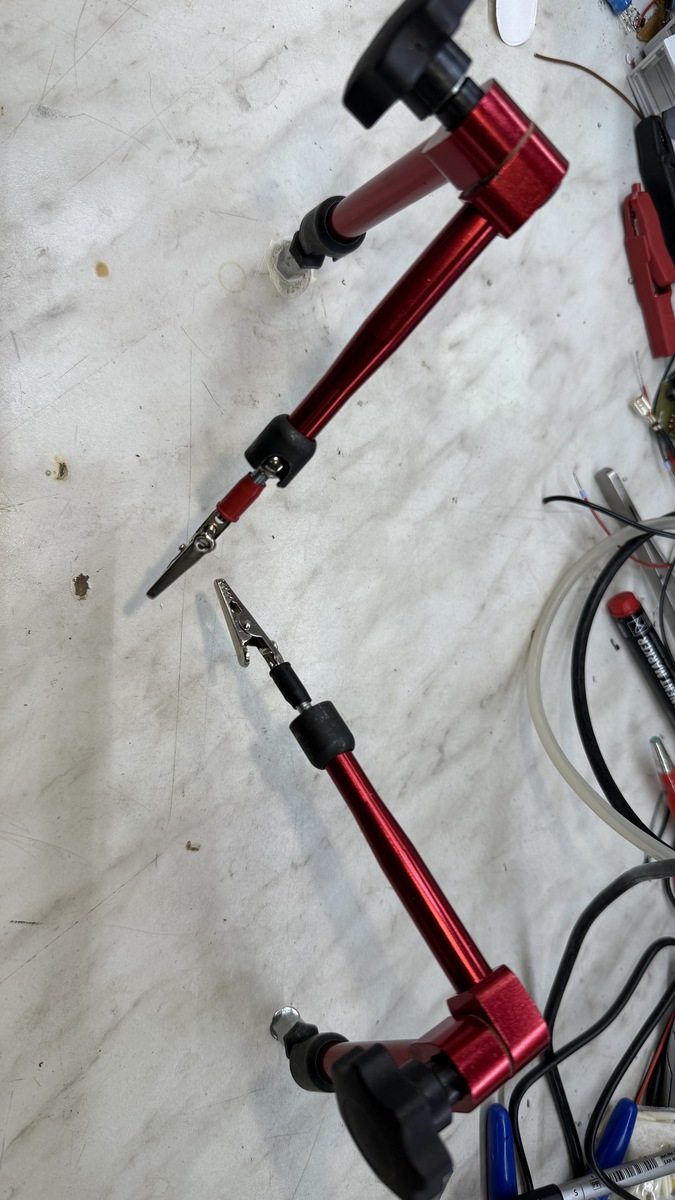 Jörg R. schrieb: > Das System habe ich auch, allerdings nicht als Löthilfe. Das benutze ich > schon zum messen. Wie schlägt sich das Original? Ich hab echt schon sehr angenehm starke Neodym Magnete bei meiner DIY Lösung, ist trotzdem "rutschig". Das platzieren der Nadeln ist auch immer so ne Sache, starrer Draht als arm für die Spitzen, schön und gut, das Federn die Pogopins ja ab, aber wehe man versucht viele nebeneinander zu platzieren, Geduldsspiel. Häufig drückt man die nebenliegende weg weil man doch an den Arm der bereits platzierten Nadeln kommt. Vielleicht habe ich auch einfach die falsche Drahtstärke benutzt. 1,5mm² ist wohl zu wabbelig.