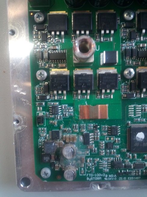 Hallo, Ferngesteuerte Mähraupe. Ein Motor zuckt - läuft aber nicht mehr. Signal von der Fernsteuerung kommt richtig an, geht dann per Datenbus zum Stm32Fxxx auf dem Motor-Controller und von da offenbar nicht weiter zu den 6 Halbbrücken. Die drei Gate-driver sind neben den Schrauben erkennbar. Fraglich ist, welche 6Pins des stm zu den Gate-drivern führen. Würde dann versuchen, ob ich den Motor über diese 6Pins bewegt bekomme. Es geht also um das, was zwischen Gate-drivern und stm ist. Ich weiß - nicht ganz einfach. Danke für wohlmeinende Unterstützung.