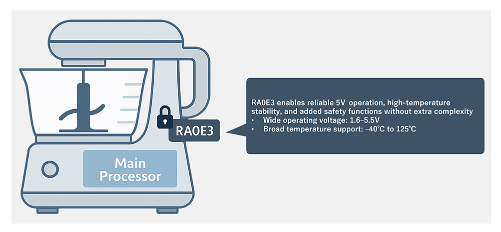 Consider home appliances like food processors or kitchen mixers. These devices often feature a safety lock mechanism to prevent operation unless all parts are securely assembled. Instead of burdening the main processor with managing this safety feature, many designs offload it to a dedicated submicrocontroller. |