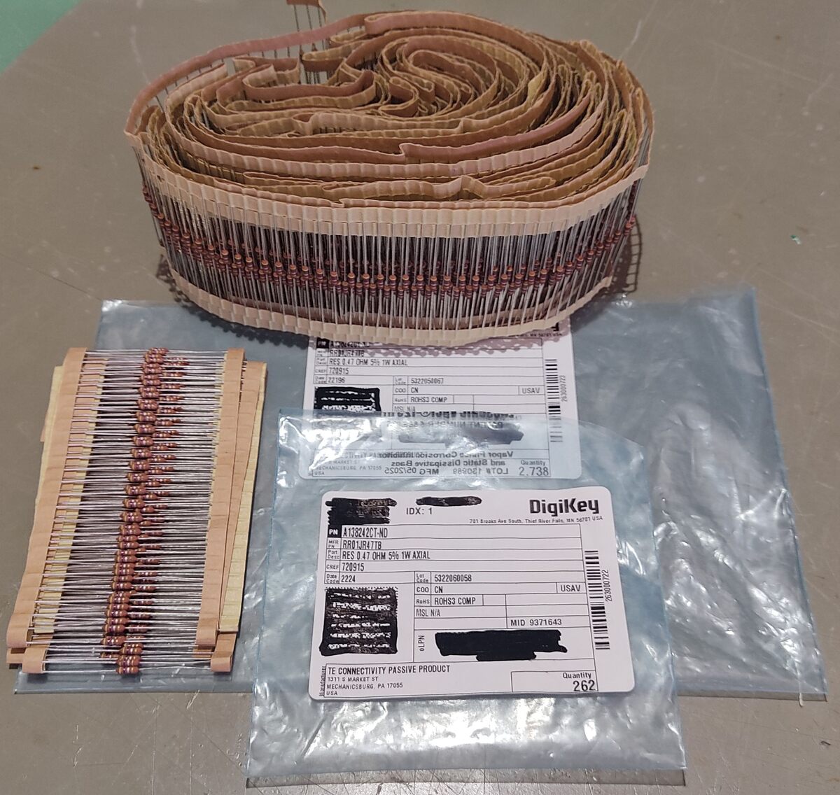 Hallo zusammen, ich verkaufe: ca. 3000 Widerstände (ein paar Muster fehlen zu 3000) 0.47Ohm, 5%, 1W, Axial neuwertig Hersteller: TE Connectivity Mfr PN: RR01JR47TB Bei den Widerständen handelt es sich um eine Fehlbestellung, die ich vor dem Container gerettet habe. Diese Lagen jetzt ca. 1 Jahr rum. ICh würde mir 30€ inkl. Versand (DHL/Hermes Päckchen) vorstellen. Wären 1 €cent pro Stück. Oder macht mir ein Angebot. Gruß SoftTroniker