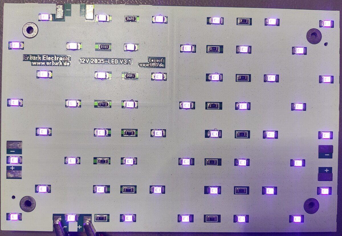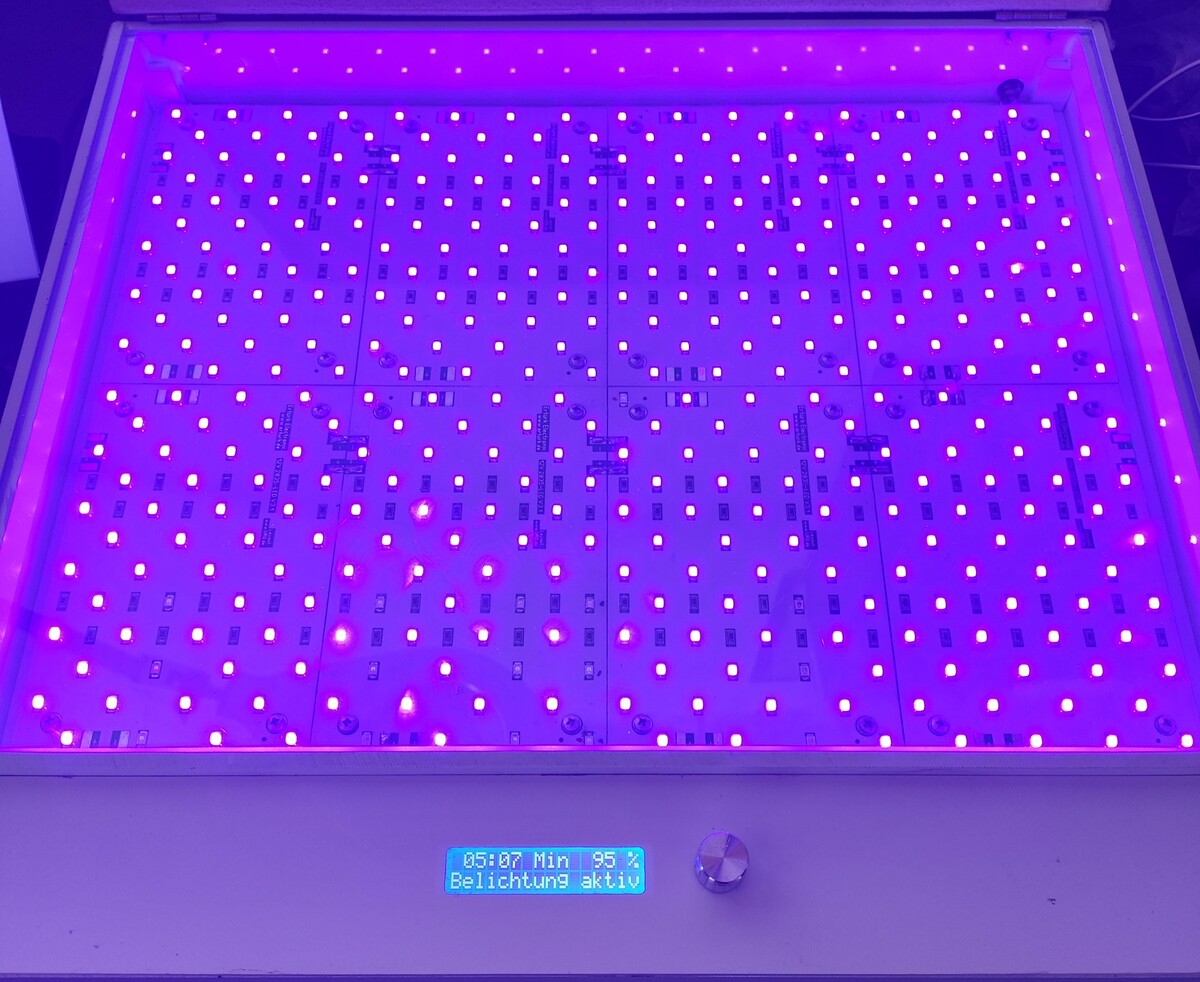 > Vergessen Sie alle bisher bekannten alten UV Lampen oder > Röhren-Belichter. Ist aber kacke. Ich hab so vor 7-8Jahren auch mal sowas gebaut. Konnte Europaformat und hatte 96LEDs. War eber noch zu wenig, fuehrte zu ungleichmaessiger Belichtung. Aber not schlimmer die UV-Leds altern. Die notwendige Belichtungszeit wird also immer laenger. Bin deshalb wieder auf Roehren umgestiegen, ist deutlich standfester. Vanye