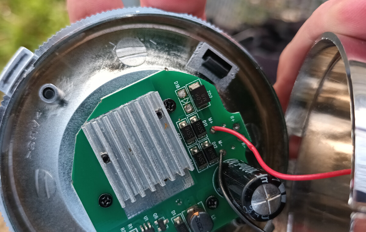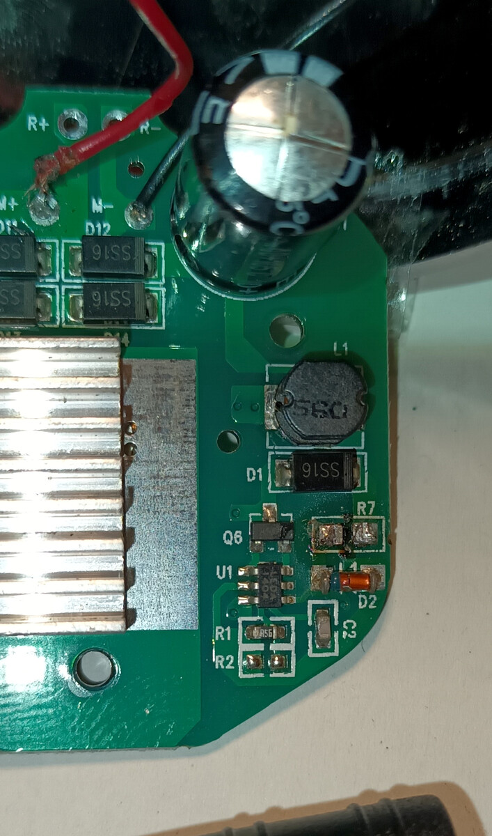 Hallo zusammen, ich habe heute ein gebrauchtes Rad gekauft, und siehe da - das Licht geht nicht. Bild 1 zeigt mein Erlebnis von unterwegs, als ich die Lampe geöffnet habe. Die Platine, und mir fiel aus dem Gehäuse der Lampe ein SMD-Bauteil mit der Aufschrift "M7" in die Finger. Also dachte ich mir "super, das löte ich wieder drauf und dann geht die wieder!" Leider habe ich meine Fähigkeiten überschätzt, sie geht nämlich nicht wieder. Bild 2 zeigt die Platinen-Vorderseite mit der LED. Bild 3 meinen Versuch, das SMD-Bauteil, das aus dem GEhäuse gefallen war, auf den unbestückten Sockel für eine Diode "D16" zu löten. Anlass dafür war die Messung mit Multimeter des SMD-Bauteils, das in eine Richtung sperrt und in die andere ca. 5.7 MOhm hat. Bild 4 Detail des unteren Bereichs in dem "R7" fehlt. Die Spuren, die da zu erkennen sind, stammen auch von mir. Mein Problem ist nun: Wie würdet ihr vorgehen? Ich habe die Lampe an den Nabendynamo angeschlossen, funktioniert nicht (kein Licht). Ich habe gelesen, dass die Nabendynamos Wechselstrom ausgeben, d.h. ich kann das aktuell immer nur am Fahrrad testen. Hat jemand eine Idee für mich oder weiß sogar, wo das Teil wie rum hingehört? Es wäre einfach schön die nicht wegschmeißen zu müssen. Modell der Lampe ist ähnl. Union 4915