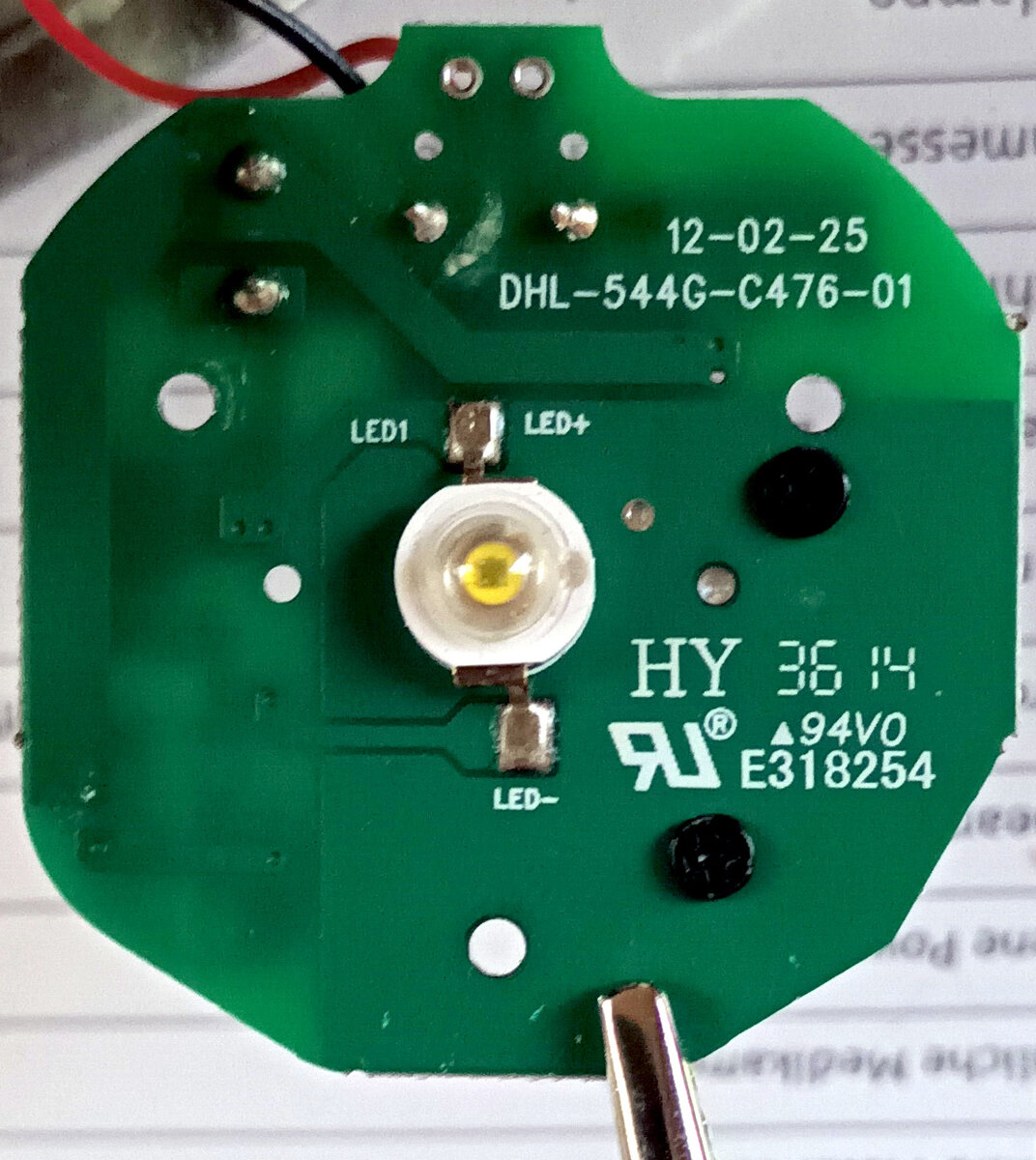 Leider nicht :-( Den Versuch mit 5 V habe ich mit einem USB-Netzteil gemacht, das 500 mA kann. Die 6 V müsste ich entweder mit einem anderen kleinen Netzteil machen, ich denke ich habe genug in meiner Sammlung. Ich überlege die LED rauszulöten und mal mit Vorwiderstand auf dem Steckbrett zu testen. Das wäre mehr oder weniger das Gleiche wie was Du vorschlägst, oder?