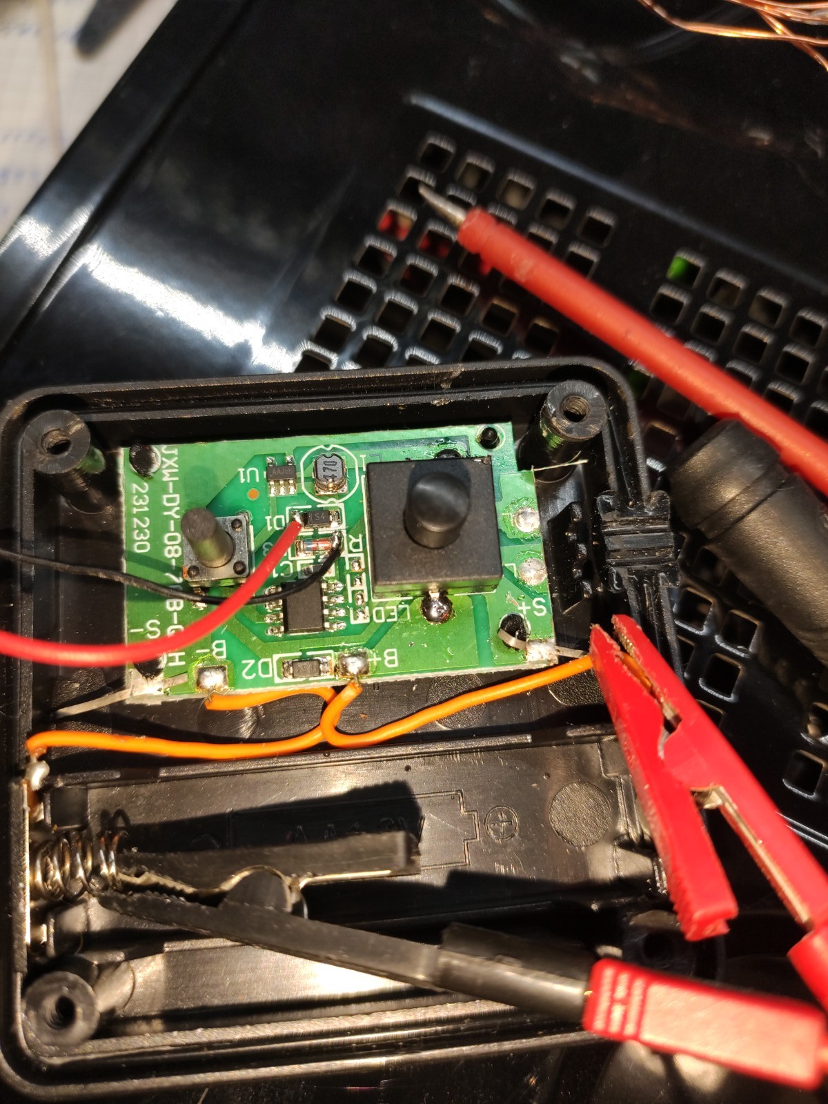 Hi Meine Suchmaschine Startpage findet nix zu dem 5-Beiner. Vielleicht hat von Euch jemand einen Hinweis wie der Käfer wirklich heißt. Arbeiten tut der in einer Solar-LED Lichterkette als Stepup und soll in der Schaltung 1 - 1,3V einer NiMh-Zelle auf ca 3V anheben. Der im Bild untere linke Pin deaktiviert der Regler wenn die Solarzelle zu speisen beginnt. Retten will ich eigentlich nicht mehr viel. Mich 8nteressiert halt warum die Kette nicht mehr funktioniert. Der Namenlose 8-Beiner mach aus den max 4,3V jedenfalls eine Wechselspannung über deren Varianz die eine oder andere Hälfte der Lichterkette leuchtet. Jedoch beginnt der Stepup bei 1,2V Versorgung und ca 13mA Last auf unter 2,7V zusammen zu brechen. Takten tut der Stepup mit 100kHz. Die Lichterkette zieht mit ca 30mA deutlich mehr als die Schaltung liefert... Viel Text wegen fast nix. Aber nochmal die Frage: Weiß jemand ein Dabla zu dem Marking AAJch? Armin