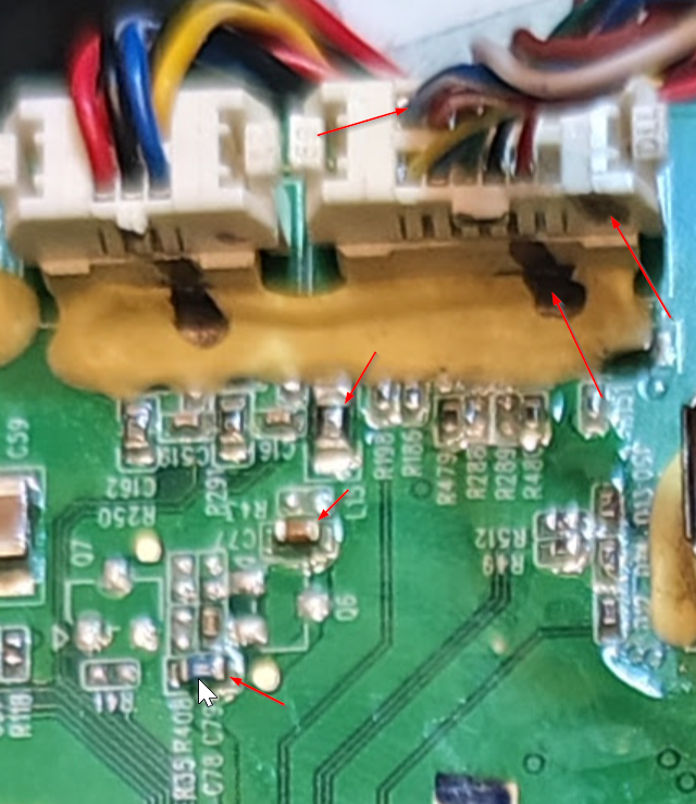 Hallo leider komme ich nicht weiter vielleicht kann mir jemand einen Tipp geben. Der Roboter läuft los uns meckert nmach ein Drehung man soll die Absturzsensoren reinigen. 1. Die Markierung des Connectors passt nicht, bei den anderen passt die Edding-Markierung. Ich befürchte das es neues Teil verbaut wurde was nicht zu dieser Version des Mainboard passt.(ich finde aber keine andere es scheint nur die zu geben!) Der blaue Pin sollte der Ground der IR-LED sein auf der Platine messe ich gegen ground aber volle Akkuspannung. Von dem Pin blau geht es auf der Platine zu einem cap->2r20->cap- N/Z Fuse Der Rote sollte wie bei anderen Absturzsensoren 3,3v haben Braun und weiß gegen zur Fotodiode die haben an allen anderen connectoren der anderen 4 sensoren 0V, hier hat der Braune aber 3,3v. Bei den anderen Connectoren ist immer erst ground, 3,3v für die IR-LED und dann 2 Pins für die Fotodiode. Der dünne weiße hat 5V für einen anderen Sensor. Ich habe die Vermutung das alles fotodioden in reihe geschalten sind? mit akkuspannung? und das pin 3-4 für die IR-LED sein sollte. Ich kann aber pin blau rot keinen durchgang zu den anderen messen, was dem wiederspricht. das messen auf der platuine macht keien spaß alles mit silikon voll und vias die irgendwo hin führen. Platine:Ecovacs 201-2417-2408 Hauptplatine von Deebot Sensorkabel:Ecovacs 201-2417-2330 Rechtes Anti-Drop- und Stoßstangenkabel für Staubsauger-Roboter
