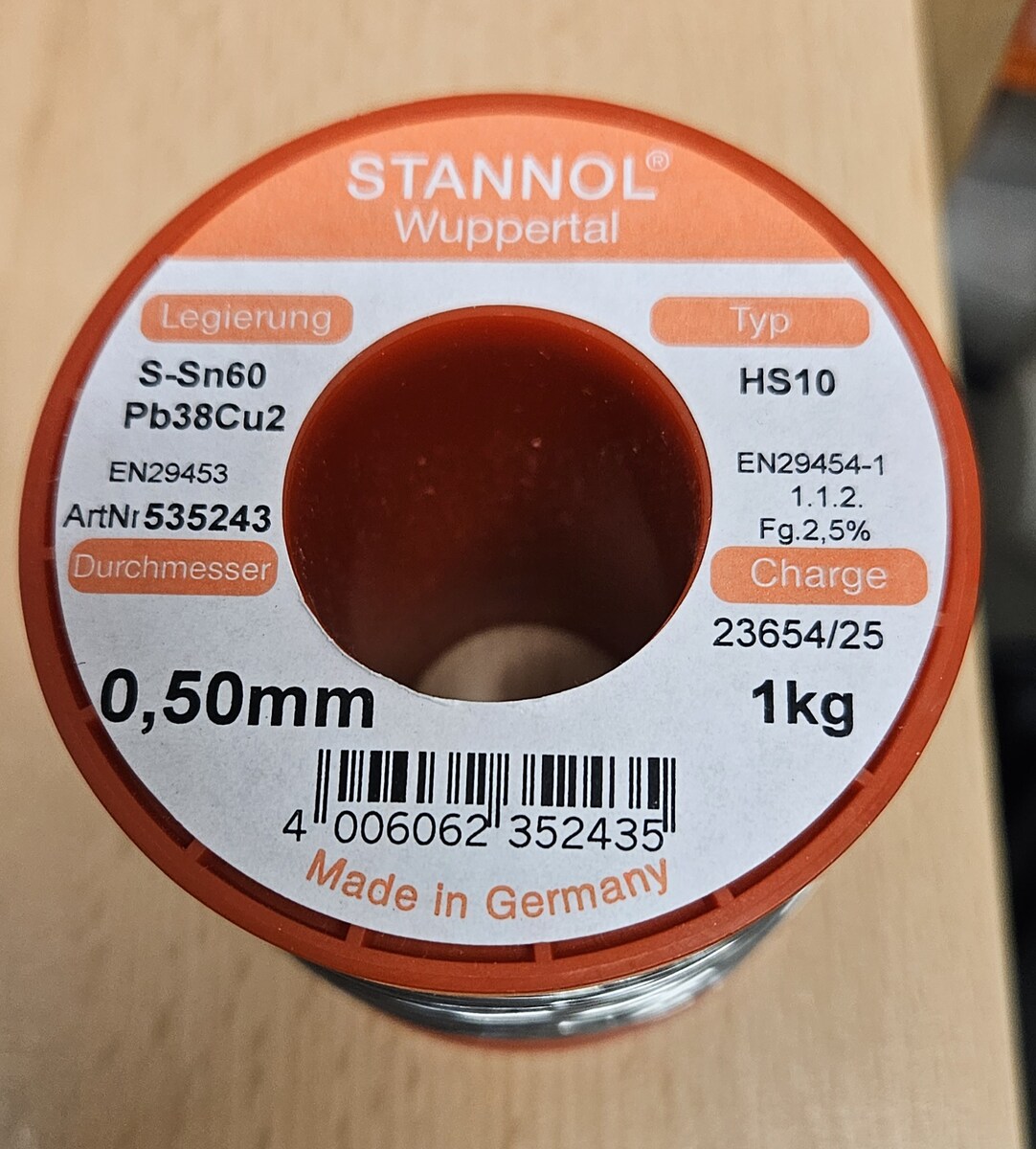 Da einer es sich anders überlegt hat stehen die nochmal zum Verkauf. 1x Stannol Lötzinn HF32 – 1kg Rolle – 1,0mm – Sn60Pb39Cu1 – Profi-Qualität Neu! Artikelbeschreibung Zum Verkauf steht eine 1kg Rolle hochwertiges Lötzinn des deutschen Traditionsherstellers Stannol. Es handelt sich um den Typ HF32, der für seine hervorragenden Fließeigenschaften und minimale Rückstände bekannt ist. 2x Stannol Lötzinn HS10 – 1kg Rolle – 0,50mm – S-Sn60Pb38Cu2 Das HS10 ist unter Profis und passionierten Bastlern legendär für seine hervorragenden Fließeigenschaften und die hohe Zuverlässigkeit der Lötstellen. Pro Rolle 59,00 Euro incl Versicherten Versand. Der Versand erfolgt schnell und sicher verpackt als versichertes Paket mit Sendungsverfolgung.