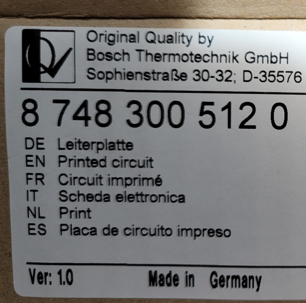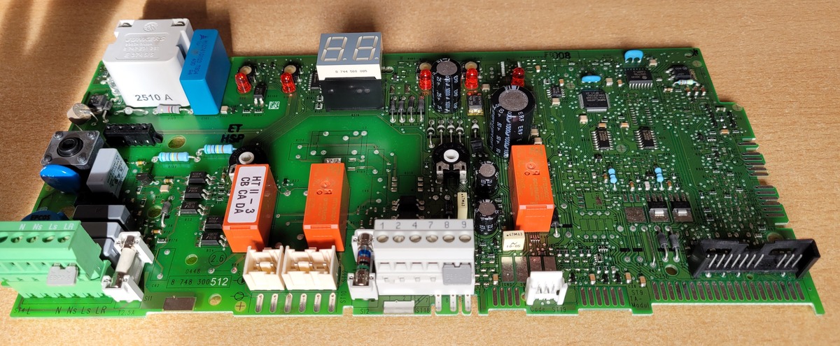 Verkaufe Steuerungselektronik 8 748 300 512 0 von Junkers. Wir hatten vermutlich eine ZSBR 3-16 A 21/23 für Heizen und Warmwasser. Zwei Stecker inklusive, siehe Fotos. Erworben in Dezember 2010 für Fehlersuche ohne den teuren Handwerker bemühen zu müssen. Da die Gastherme nicht mehr vorhanden ist, konnte ich nicht testen. Deshalb Privatverkauf ohne Gewährleistung und ohne Garantie. Keine Rücknahme. Gekauft wie gesehen. Nur Abholung und Barzahlung 79€ in Stuttgart und Umgebung.