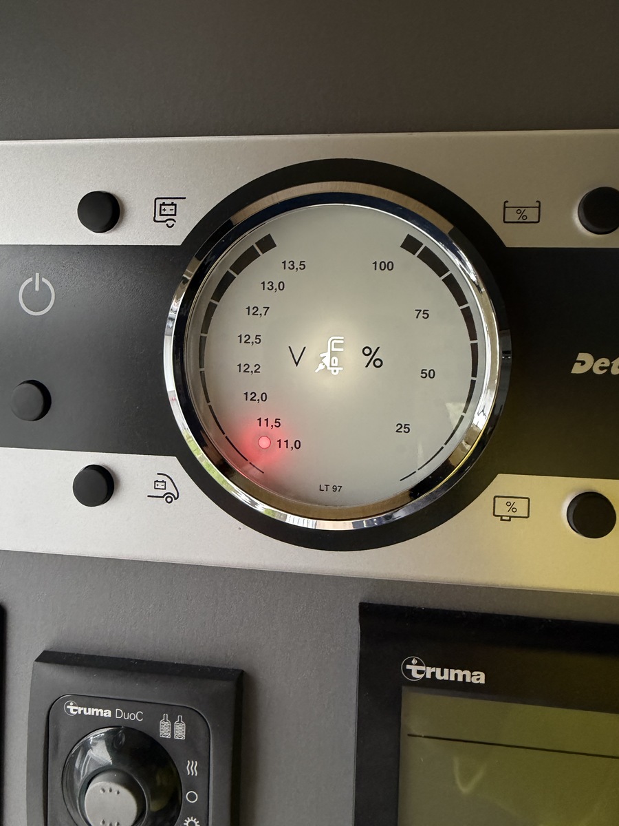 Kann nicht sein unter 11V würde ich auch beim starten merken. Wenn ich auf den Knopf für Aufbau oder für die Startetbatterie drücke sind es 13V die mir im Controlpanel angezeigt werden.