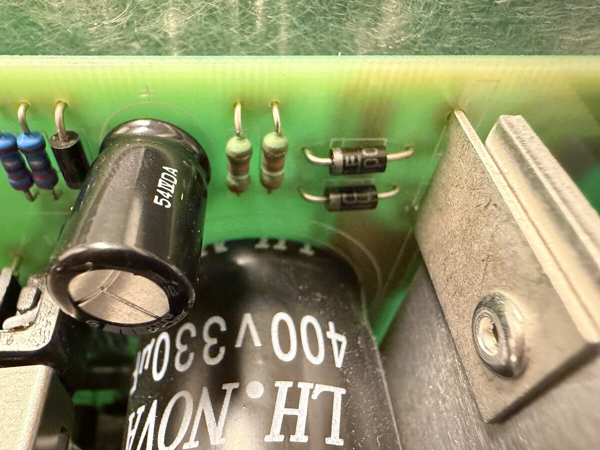 Ariane S. schrieb: > ein Wiederstand mit 39,2 K Ohm > ist tot. Na da haben wir ja den kleinen Racker. Die beiden Widerstände (übrigens ohne 'ie') sind vermutlich in Reihe geschaltet, weil einer alleine nicht über 200V verträgt. Die zusammmen bilden den Startwiderstand. Daneben übrigens dürfte der von mir erwähnte Elko sein. Wenn du schon beim Teilekauf bist, besorge den gleich mit. Sollte aber schon ein Markenelko sein, Panasonic oder Rubicon.