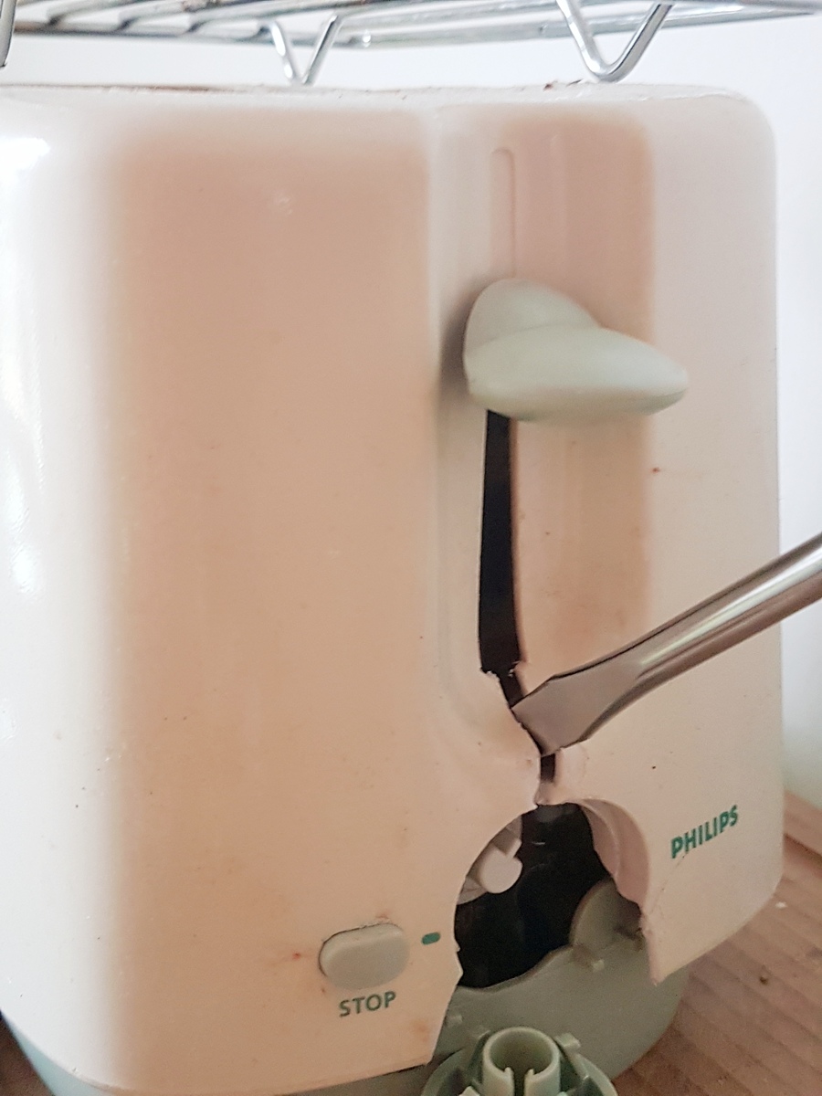 Hallo Marcel, genau DAS will ich ja vermeiden. Im Netz gibt es zig Anleitungen über Toaster-Reparaturen, auch viele Videos. Aber entweder geht der Schieber leicht und luftig fast von alleine ab oder es wird gar nicht gezeigt, wie es geht, denn plötzlich ist die Haube runter und keiner weiß wieso