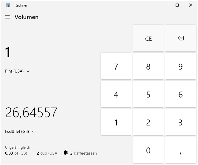 1 Pint (USA) = 26,64557 Esslöffel (GB)