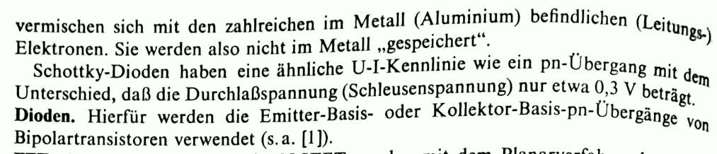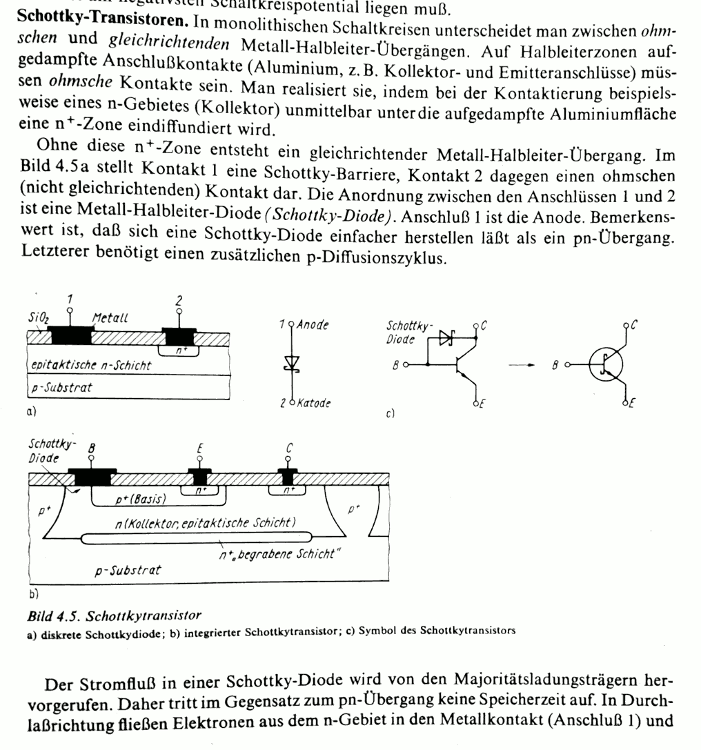 J. T. schrieb: > Und bei Variante rechts würde die Schottky ja nur was machen, wenn man > an die Basis eine Spannung anlegt, die größer als die Kollektorspannung > ist? Hallo, anbei ein Auszug aus meiner Ingenieurarbeit im Januar 1979. Ich brauchte für ein Schaltnetzteil einen schnellen Schalter, eine Vorstufe für den Leistungstransistor. Damals war ein BC107 und ein BC177 schon die beste Wahl. In der Bibliothek hatte ich in der Funkschau 78/4 eine Schaltung gefunden bei der die Transistoren nicht in die Sättigung kommen und deswegen wesentlich schneller waren. Im Labor stand mir damals sogar ein Hameg Oszi mit zwei Kanälen und 20 MHz Bandbreite zur Verfügung. Das waren noch Zeiten! Die Stufe war wirklich schnell. mfg Klaus