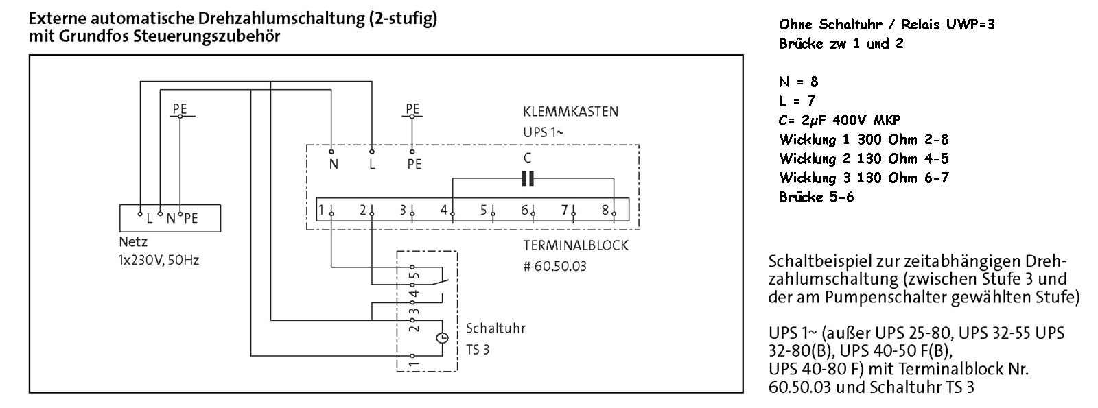 Hi! Schaltbildd der neuen Pumpe? Umschaltung der 3 Stufen normalerweise an/in der Pumpe selbst. Bei alten per Schalter am Gehäuse, bei neueren elektronisch nach erkannter Last. Und irgendwas passt bei deinen Angaben nicht: die UMC 32-30 die man auf die Schnelle findet sind 3-Phasen Drehstrom Pumpen, dein Schaltbild oben zeigt eine Phase? Solche Drehstrompumpen findet man doch eher nicht in handelsüblichen Einfamilienhäusern... . VG