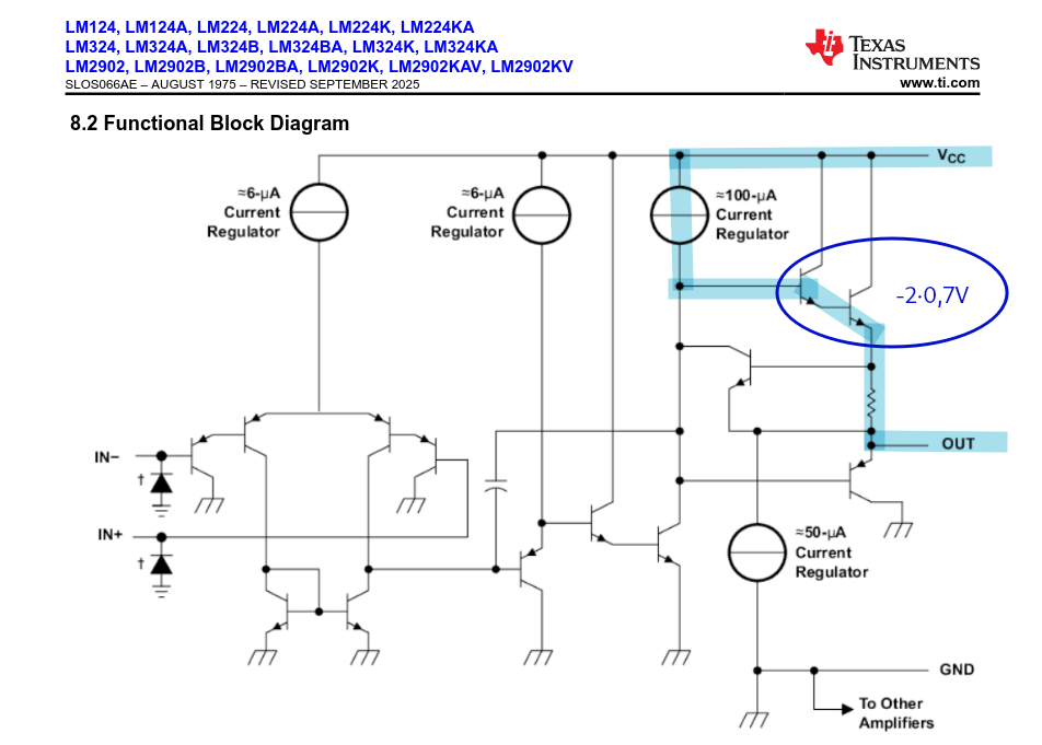 maxinal 1,5V weniger als die Versorgungsspannung V+. Außerdem tun sich