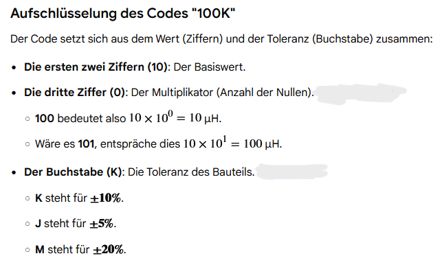 hab auch nochmal geschaut und das folgende gefunden (sieh Bild) Sind wohl tatsächlich 10µH. Maße sind Länge ca. 3,6mm x Breite ca. 2,7mm x Höhe ca. 2,1mm