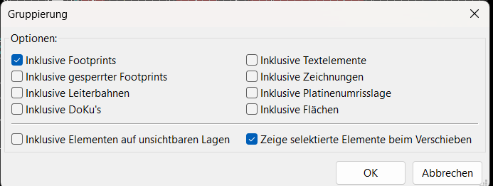 Guten Morgen zusammen, ich habe ein Problem bei KiCad 5.1.5. Leider kann ich im PCB Designer die Funktion Gruppierung nicht mehr ausschalten. Jedes mal wenn ich mit der linken Taste an der Maus klicke um ein Bauteil zu verschieben kommt das Gruppierungsfenster. Bauteile kann ich nur noch mit der Taste M verschieben. Kennt einer die Lösung zu diesem Problem? Ich weiß, das aktuell das Problem vor dem Computer sitzt ;-). Vielen Dank im Voraus !