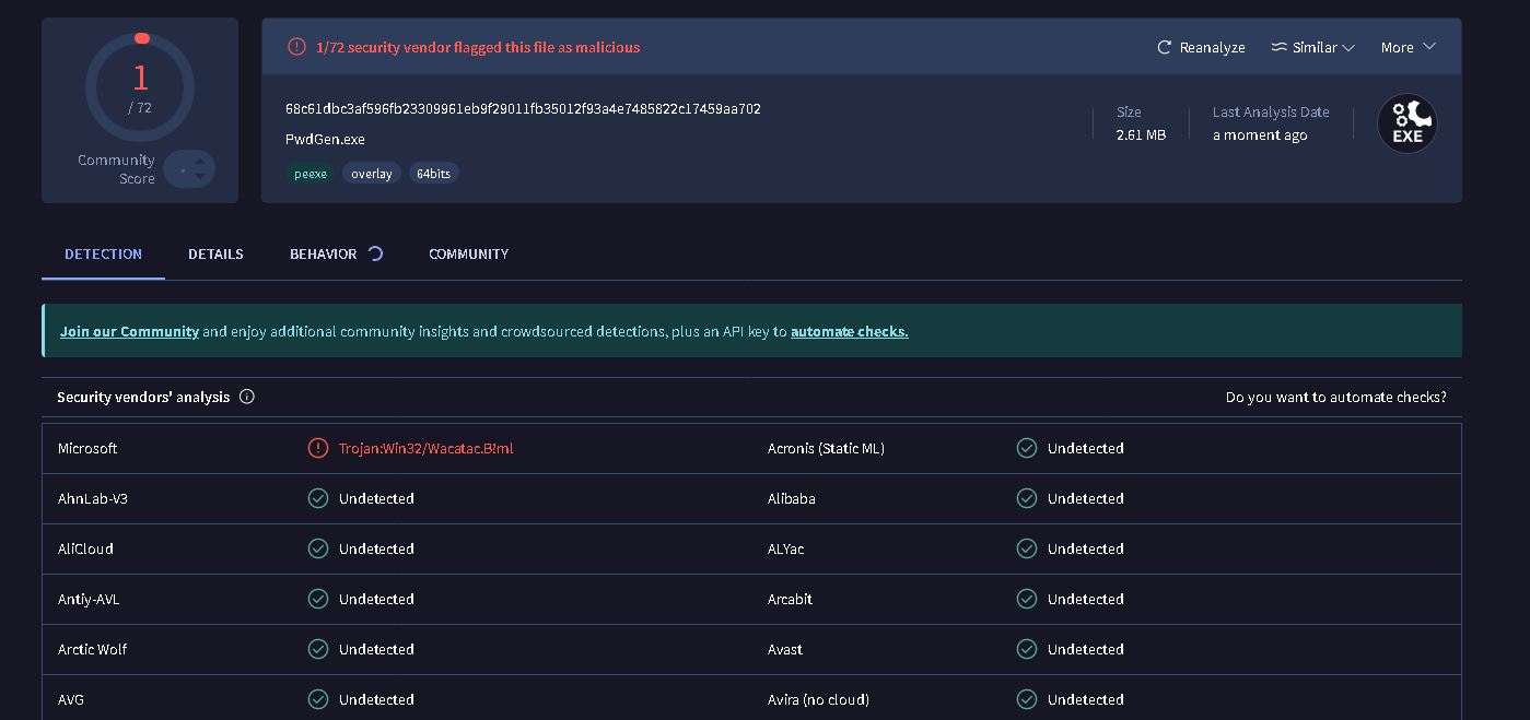 Schaut euch doch einfach mal die Datei auf Virustotal an! Dann dürft ihr motzen! https://www.virustotal.com/gui/file/68c61dbc3af596fb23309961eb9f29011fb35012f93a4e7485822c17459aa702?nocache=1