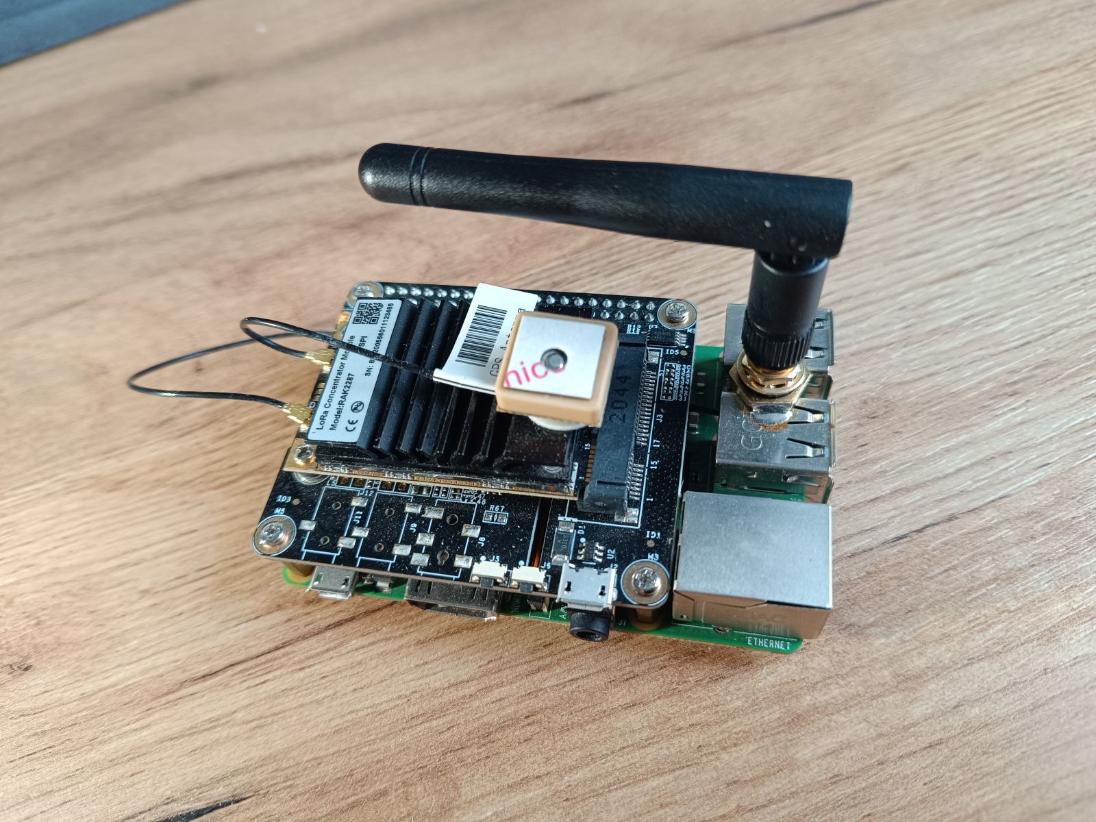 Biete einen Raspberry Pi mitsamt LoRa-Concentrator-Modul von RAK Wireless mit passendem RasPi-Hat an. Das RAK2287-Modul ist mit GPS ausgestattet und für die EU-LoRa-Frequenzen gedacht. Zusammen mit dem Hat und dem Pi können so einfach und schnell LoRa(WAN)-Nodes eingerichtet werden. Das Modul spielt problemlos mit Chirpstack. Lieferumfang: - LoRa-Modul - Pi-Hat - Raspberry Pi 3B+ - 8GB SD-Karte (leer) - GPS-Antenne - Stummelantenne mit Pigtail (der professionell auf die USB-Buchsen gelötet wurde...) 120€ inkl. versichertem Versand innerhalb DE (PayPal oder Überweisung möglich)
