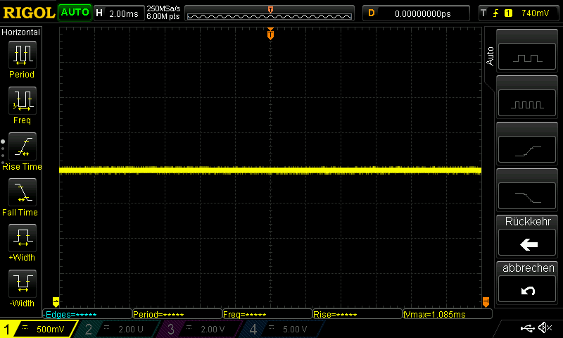 Christian S. schrieb: > Am C169 ist die Spannung noch vollkommen ungeregelt und geht ohne > Belastung auf den Spitzenwert der Wechselspannung minus zwei > Diodenstrecken hoch, die der Trafo ohne Last liefern kann. Danke - das hab ich mir dann auch gedacht, nach dem ich vorschnell C168 getauscht habe und sich genau nichts am Oszi Bild geändert hat :) Am C158 sehe ich 100Hz Ripple mit 500mV => ist das zu erwarten oder zu viel? Auch die Spannung ist am C158 nur begrenzt gut geregelt: je nach LED Anzeige (mehr/weniger Segmente eingeschaltet) ändert sich diese Spannung um 0,5V. Da C158 (wenn ich das richtig intepretiere) nur einen Spannungsregler aus 2 Transistoren hat, ist das womöglich zu erwarten? Am C166 sehe ich dann tatsächlich eine ziemlich stabile Gleichspannung von 4,7V. Das Rauschen was ich da sehe, ist wohl die Grenze von dem was mein Oszi messen kann (max. 60mV) und keinerlei Schwankungen im 100Hz Bereich. Die Spannung unabhängig von der LED Anzeige.