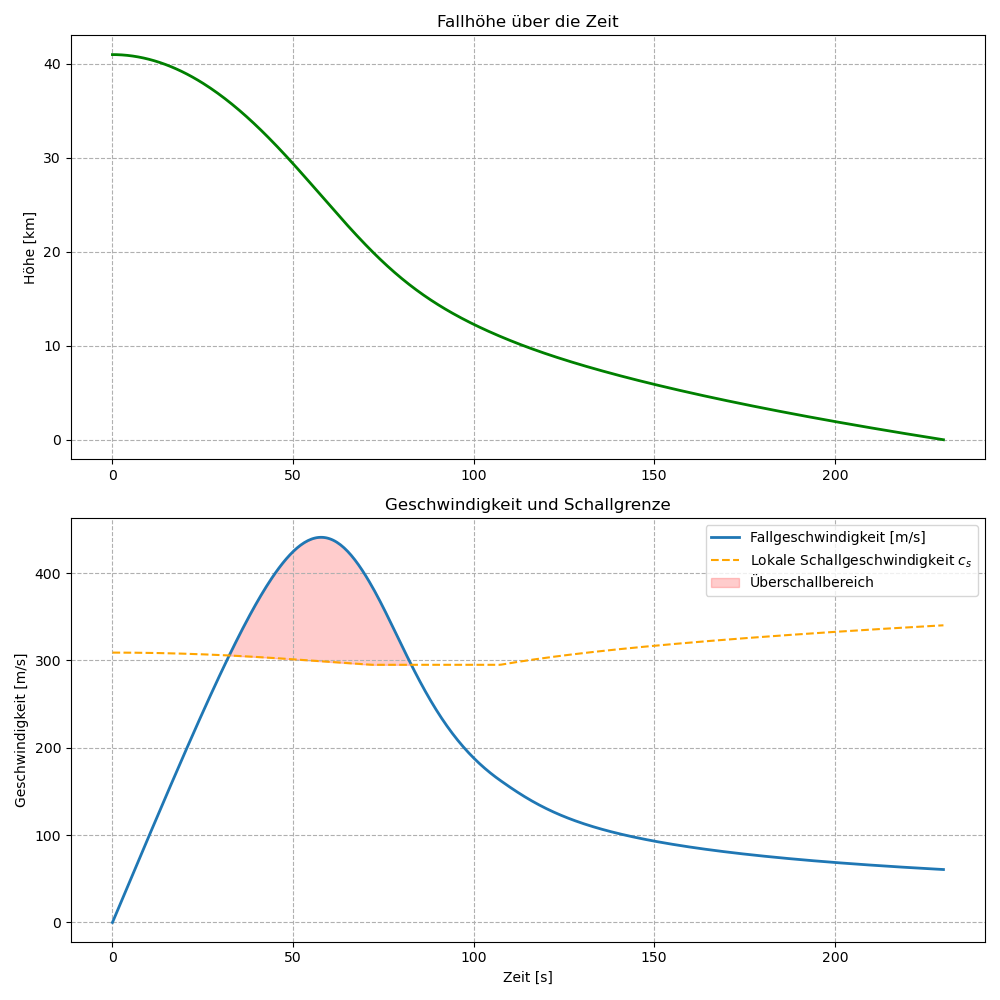 Christoph E. schrieb: > den Stratosphärensprung von Felix Baumgartner inkl. Luftwiderstand > nachstellen Ich habe mal das Modell der International Standard Atmosphere (ISA) mit eingebaut :-) Der Kerl flog fast eine Minute mit Überschall.