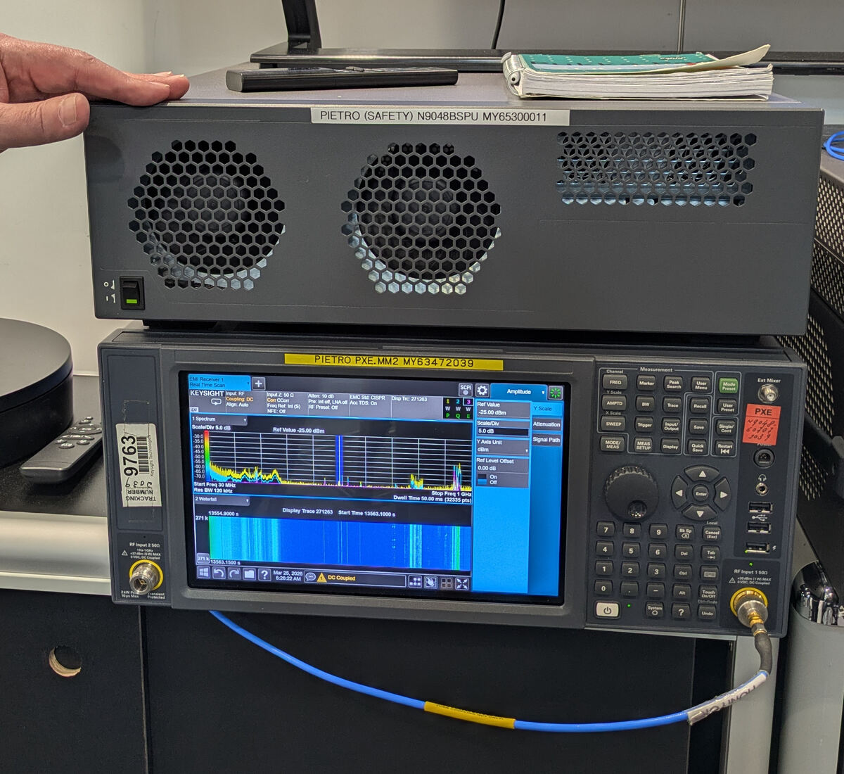 Im Hause Keysight zeigte man eine derzeit noch als Prototyp vorliegende Version des hauseigenen EMI-Messempfängers, die eine Echtzeitbandbreite von 1GHz erreicht.