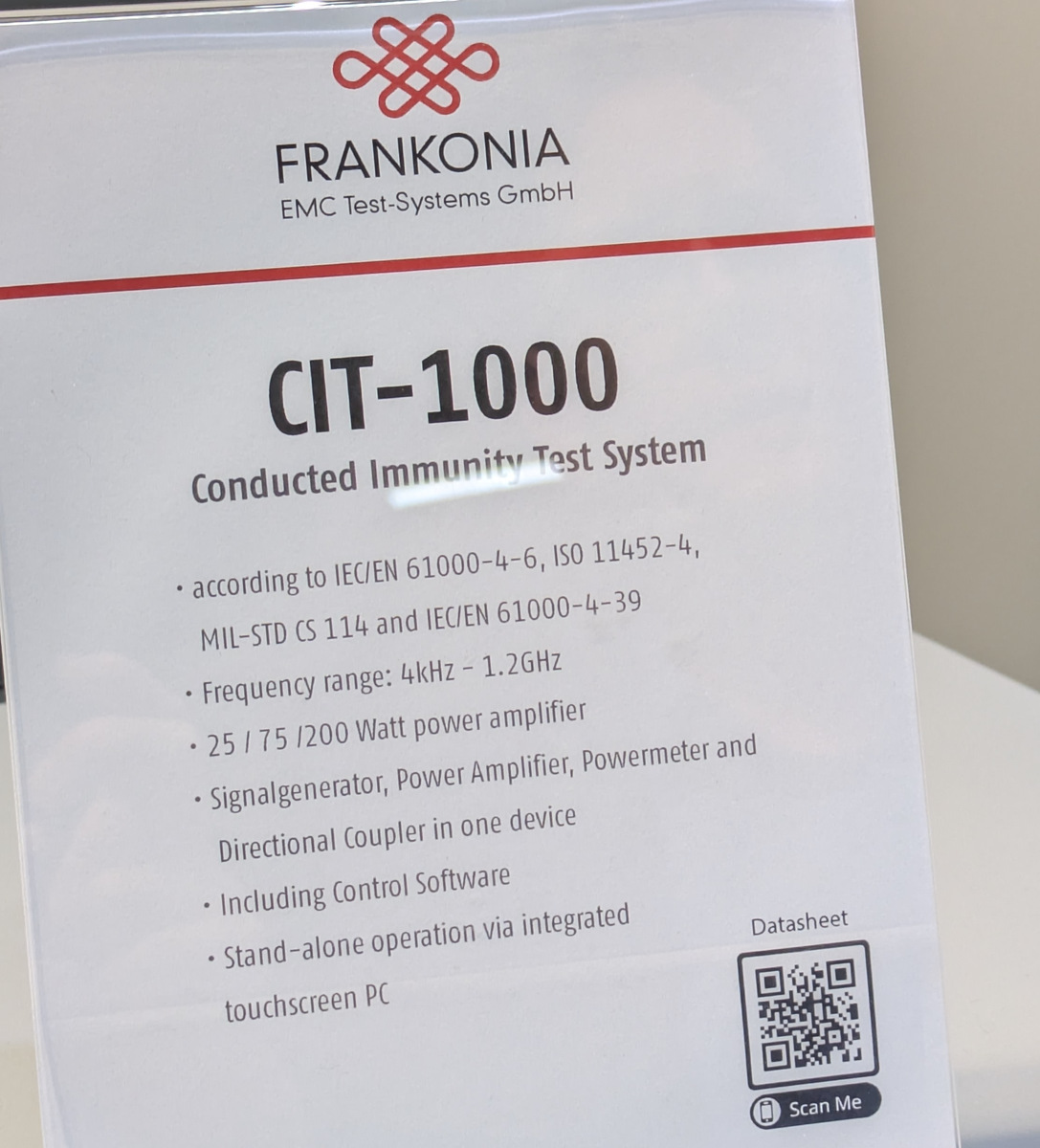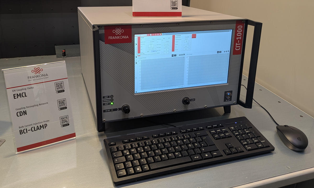Frankonia zeigt einen auf Windows 11 basierenden EMV-Signalgenerator, der außerdem einen Leistungsverstärker im Gerät unterbringt. Die auf der EMV 2026 neu gezeigte Variante erreicht dabei eine Maximalleistung von 200 W.