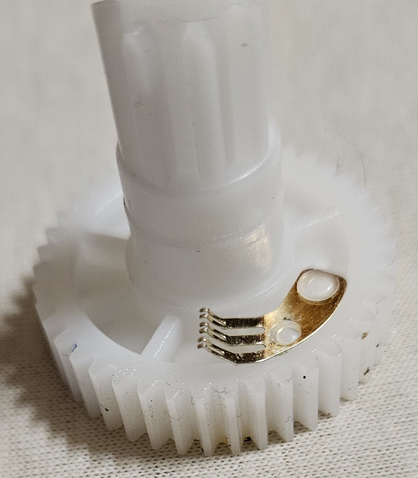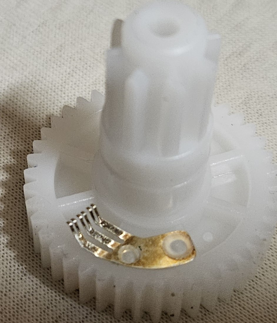 Das ist ein Schleifer. Den kann man nicht einzeln bekommen, denn der ist ein Teil eines Ganzen, das mit den Kontakten auf dem Gegenstück übereinstimmen muss. Solche Schleifer werden in Drehschaltern und auch Drehimpulsgebern verbaut; die Anordnung der Kontakte auf dem Gegenstück legt die Funktion fest. Dein Schleifer stammt ziemlich sicher aus einem Drehimpulsgeber, siehe Abbildung.