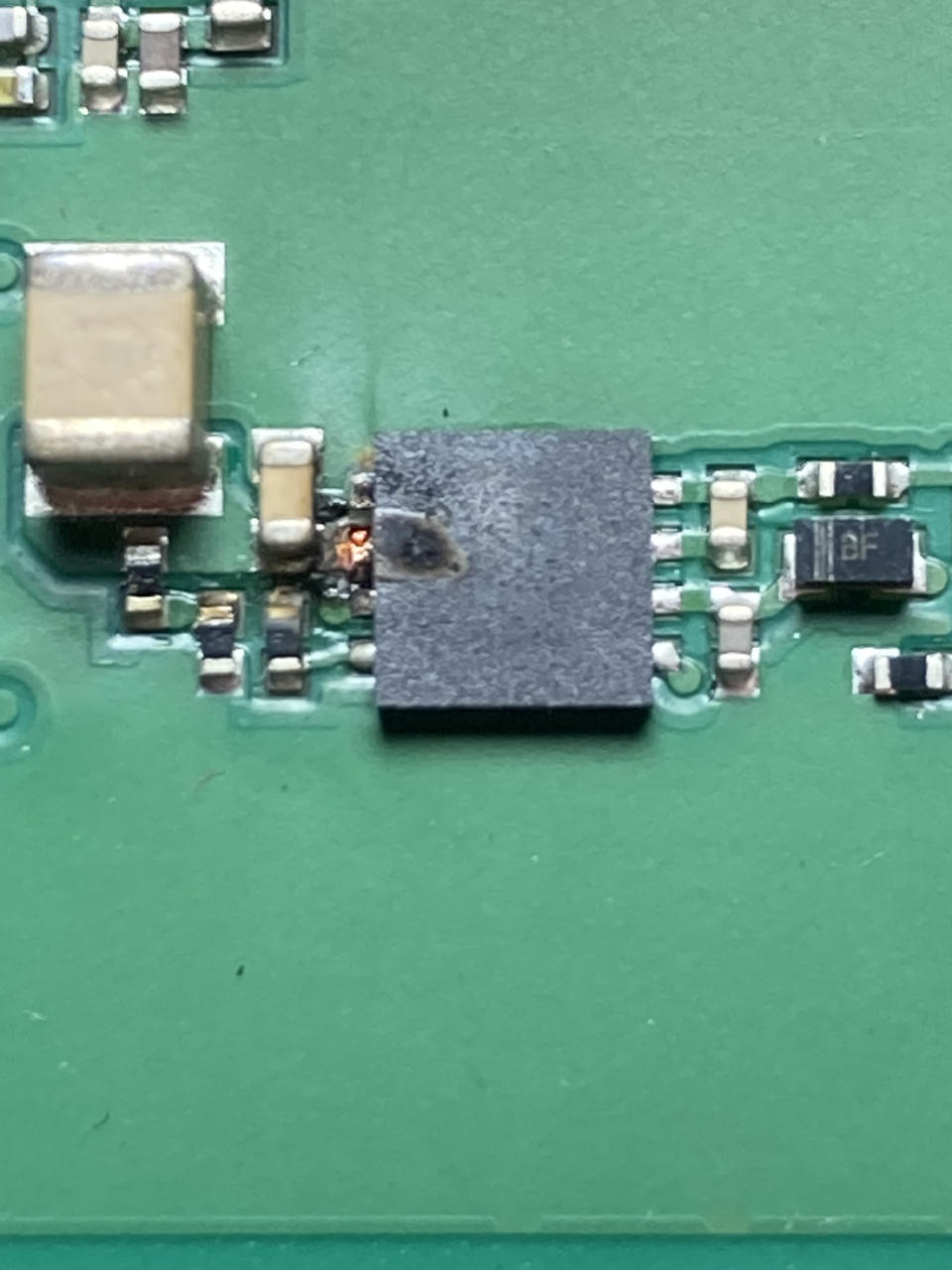 Guten Tag, ich habe mich gerade erst angemeldet, bin Elekronikingenieur und lebe in Kenzingen. Ein Solateur hat mir 3 defekte solarmax DC-DC-Konverter zur Durchsicht gegeben. Die Wandler scheinen CLLLC Wandler zu sein (Dual Active Bridge) und die Energie zwischen dem Batteriekreis 50V und einem 700V Zwischenkreis hin- und herzuschieben (Die Induktivität des dritten Ls in CLLLC habe ich noch nicht gefunden, kann man das rein mit der Streuinduktivität erledigen?). Da ich keinerlei Unterlagen habe, konnte ich sie nur sehr begrenzt durchmessen, habe aber bei allen drei die gleiche Problemstelle gefunden: bei einem Hilfsspannungskonverter für die Versorgung der 700V-Seite ist der Snubber-Widerstand deutlich zu heiss geworden. Dort sind 0402 Widerstände verbaut, die wohl deutlich unterdimensioniert sind (Lötstopplack braun). Ein Widerstand ist komplett ausgefallen und eine Gleichrichterdiode (B2100) ist durchlegiert, beim zugehörigen Schaltregel-IC (leider unterm Kühlkörper) sind auch Teile einer Leiterbahn verdampft. Das IC ist so heiss geworden, dass die Typenbeschriftung weggebrannt ist. Ich nehme an, dass das von der durchlegierter Diode und somit kurzgeschlossener Sekundär-AC stammt. Trafo, Snubber, B2100, Siebung sind auf der Bestückungsseite, Schaltregel-IC (jpeg) auf der Lötseite. Weiss jemand, welches IC dort verbaut wurde? Vielleicht liest ja ein ehemaliger solarmax-Entwickler mit? Vielen Dank und viele Grüße michael