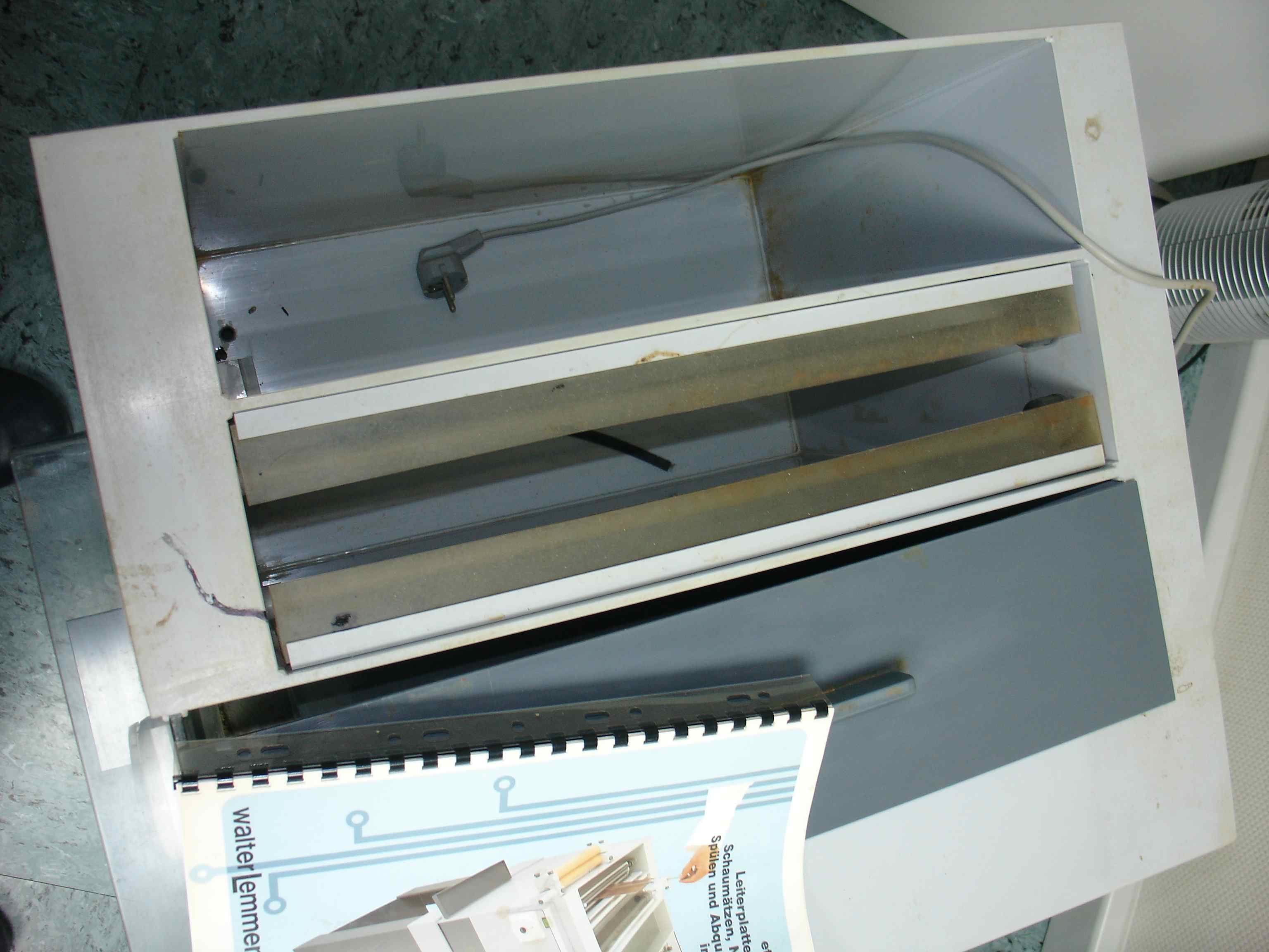 Verkaufe einen Leiterplatten Entwickler für Natronlauge V300 von Walter Lemmen und eine Welisch Schaumätzmaschine V350 für Fe3Cl. 2-seitige Leiterplatten bis ca. 300mm x 400mm können darin bearbeitet werden. Nur Selbstabholung (bei Mainz), da ziemlich schwer. Keine Gewährleistung oder Rücknahme. Preisvorstellung 300€ VB für beide