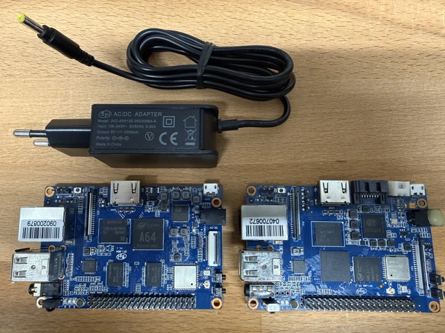 Verkaufe: • Banana Pi M3 (Allwinner A83T, 2 GB RAM, 8 GB eMMC) Die DC-Buchse wurde einmal mit Heißkleber repariert, funktioniert aber. • Banana Pi M64 (Allwinner A64, 2 GB RAM, 8 GB eMMC) Beide Boards wurden funktional geprüft und laufen. Wegen Alter und teils etwas eigenwilliger Software-/Image-Situation eher etwas für Bastler als für Plug-and-Play. Zusätzlich vorhanden: • Original Banana Pi Netzteil, 5 V / 2 A Preise: • M3: 30 € • M64: 35 € • Netzteil: 5 € • komplett: 70 € Versand: • nach Deutschland: 16,60 € • nach Österreich: 6,30 € Bezahlung: • Überweisung • PayPal Freunde und Familie Anfragen bitte per privater Nachricht, idealerweise inkl. Angabe der Mail-Adresse für Rückfragen. Privatverkauf ohne Garantie und Rücknahme.