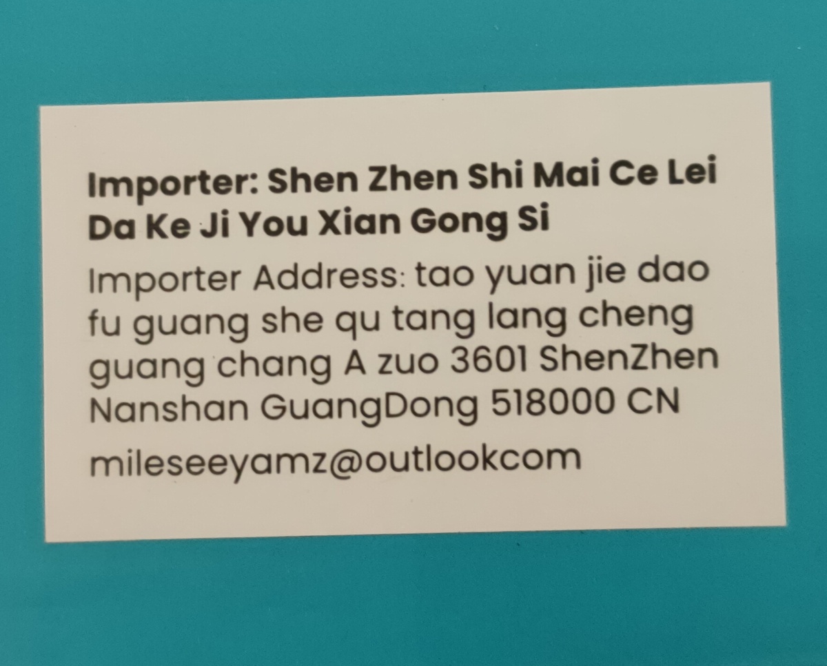 Harald K. schrieb: > Da ist recht sicher ein Firmenname und eine Ortsangabe enthalten. Das ist die komplette Wegbeschreibung zum Importeur, am Regierungssitz in Peking startend.