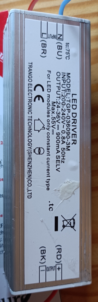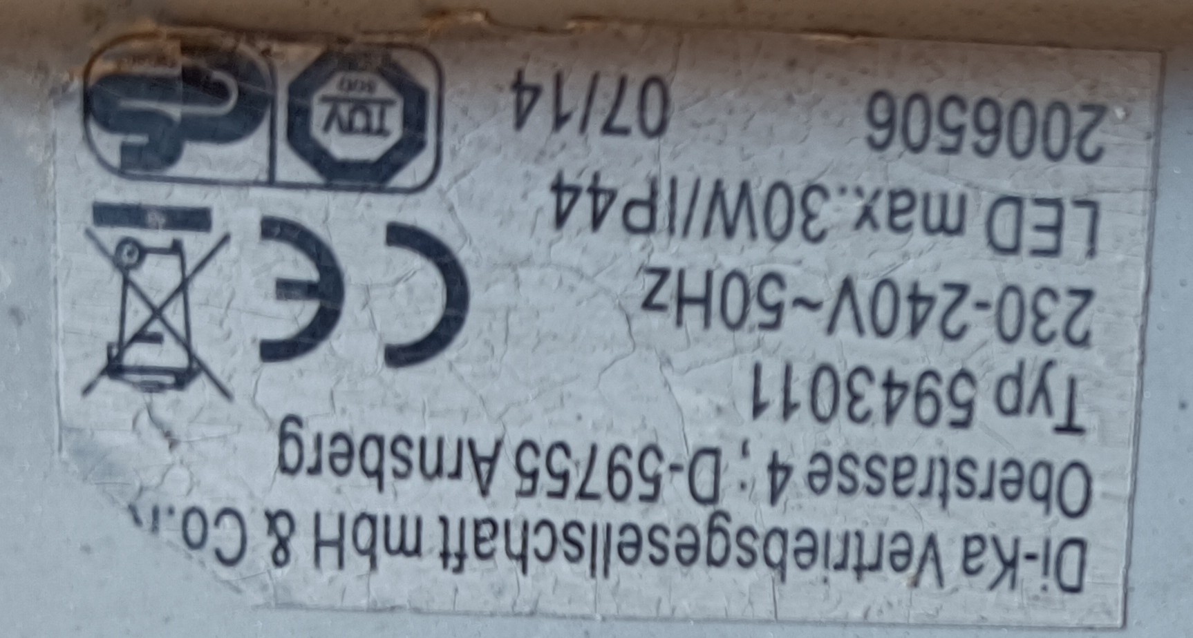 Hallo Foristen! Bei uns hat die Außenleuchte (LED-Strahler mit Bewegungsmelder) ihren Geist aufgegeben. Also das Teil von der Wand geschraubt und zerlegt. Im Wesentlichen sind drei Bauteile von Bedeutung: - Bewegungsmelder - LED-Netzteil - LED-Platte Der Bewegungsmelder tut wie er soll. Die Funktionsanzeige leuchtet (im Bewegungsmelder verbaut) und Relais ist zu hören. Am angeschlossenen LED-Netzteil kommt auch Spannung am Ausgang raus (nur unbelastet gemessen). Damit scheint das Netzteil auch erstmal ok. Das Sorgenkind ist die LED-Platte. Der Durchgangsprüfer meines Multimeters sagt: kein Durchgang in beiden Richtungen (liegt wohl an der zu niedrigen Prüfspannung). Anschluss an externes Netzteil (Spannung auf etwa 24V eingestellt, mit Strombegrenzung auf ca. 150 mA) bringt die LEDs nicht zum Leuchten. Es fließt aber auch kein merklicher Strom, d.h die Ausgangsspannung am Netzteil bleibt stabil. Soweit also den Übeltäter gefunden. Falls möglich, möchte ich die LEDs erneuern. Und jetzt brauche ich Hilfe. Wo bekommt man solche Teile. Ich habe folgende Fotos angehängt (der Dateiname sollte eigentlich Erklärung genug sein. Aber trotzdem nochmal im Telegrammstil: Bild "Typschild": Typschild der gesamten Leuchte, wegen LED-Leistung vielleicht interessant. Bild "Netzteil": Typschild des eingebauten Netzteils (wegen Ausgangsdaten), möchte ich möglichst weiterverwenden. Bild LED_Platte: Bild der LEDs auf die "Leuchtfläche". Die Rückseite ist eine durchgehende Metallplatte mit vier Bohrungen für die Befestigungsschrauben der Platte auf den Kühlkörper (Strahler-Rückseite) Wenn also jemand hier im Forum ein mögliche Bezugsquelle für die LED-Platte kennt, wäre mir sehr geholfen. Die mechanischen Maße sollten einigermaßen gleich sein. Aber ich kann da ggf. auch ein wenig nacharbeiten und neue Befestigungslöcher reinmachen, damit die Wärme abgeführt wird. Falls noch irgendwelche Infos fehlen, bitte fragen, nicht schimpfen. Schon mal vielen Dank für die Hilfe und ein schönes Osterfest!