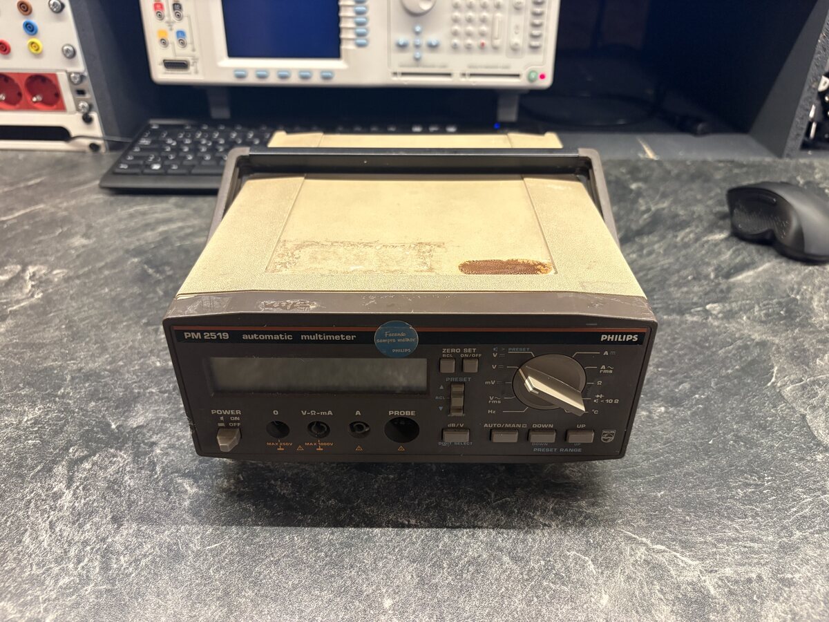 Verkaufe ein Philips PM2519 4,5-stelliges Multimeter. Das Gerät ist technisch einwandfrei funktionsfähig. Alle Messbereiche wurden mit einem Kalibrator überprüft (siehe Beispielfotos). Manual: http://bee.mif.pg.gda.pl/ciasteczkowypotwor/Philips/pm2519.pdf Optisch weist das Multimeter Gebrauchsspuren auf und ist etwas „mitgenommen“. Dies hat jedoch keinen Einfluss auf die Funktion und lässt sich mit etwas Aufwand sicherlich wieder optisch aufbereiten. Preis: 100 € inkl. Versand innerhalb Deutschlands Bei Fragen gerne melden.