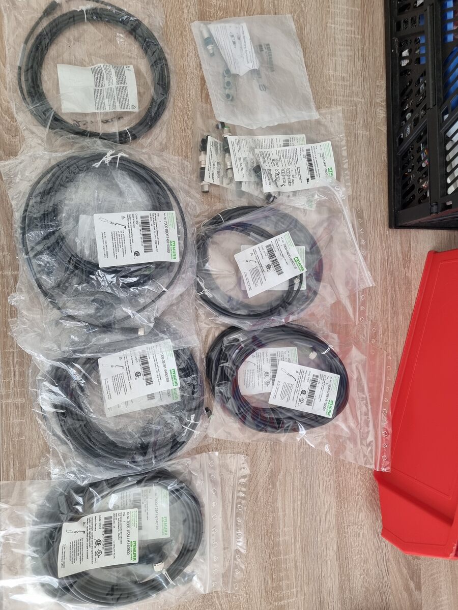 Hallo zusammen, Verkaufe hier: 3x M12 gewinkelt 4x0,34 5 Meter 3x M8 gewinkelt 3x0,34 5 Meter 2x M12 gerade mit LED 3x0,34 5 Meter 4x M8 gerade 4x0,34 5 Meter 1x M8 gerade 3x0,25 10 Meter 1x M8 gerade 3x0,25 1,5 Meter 1x M8 gerade 3x0,25 5 Meter 4x Stecker M12 gerade 4 Pol 1x Stecker M8 gerade 3 Pol Kabel je 5€ Stecker je 2€ Gruß